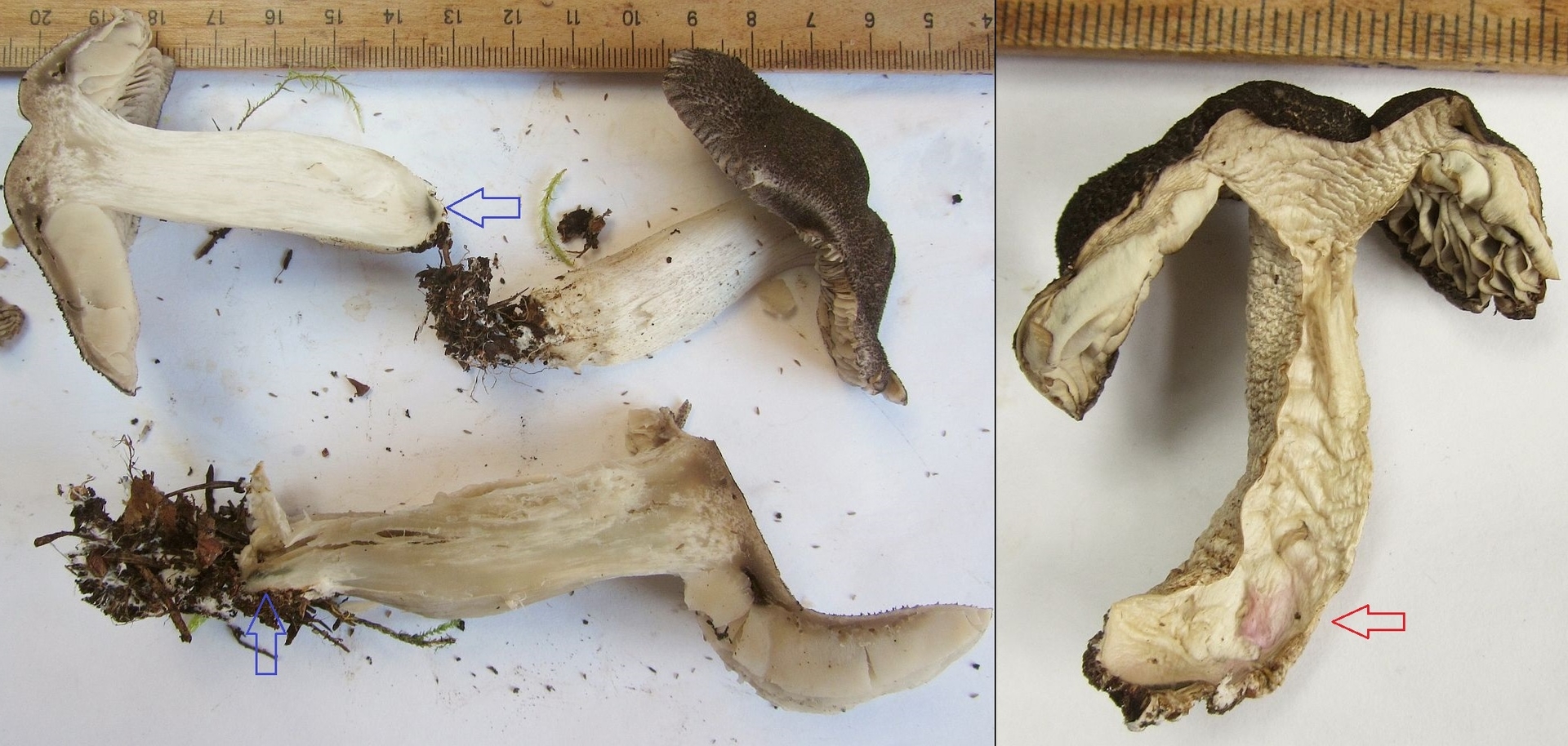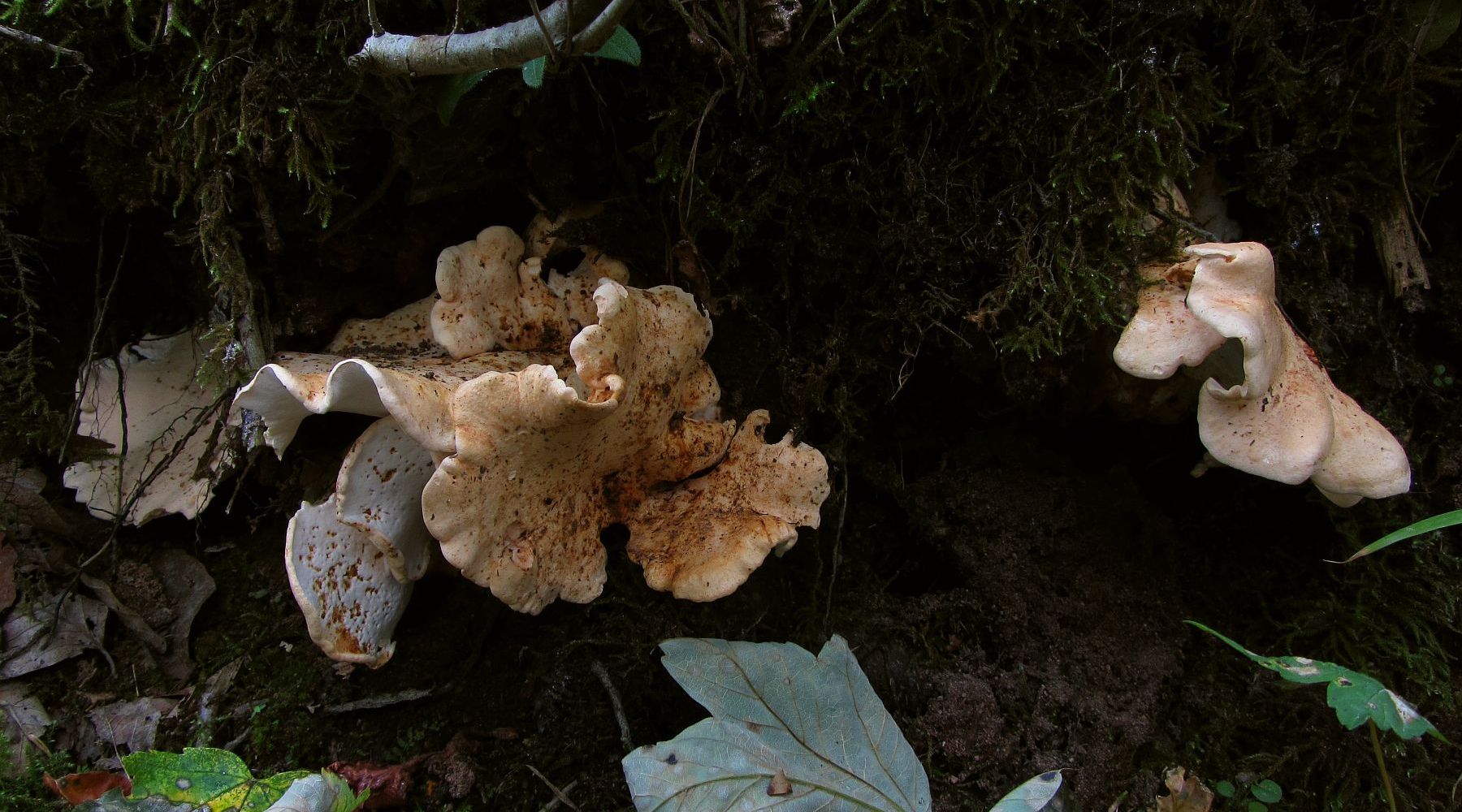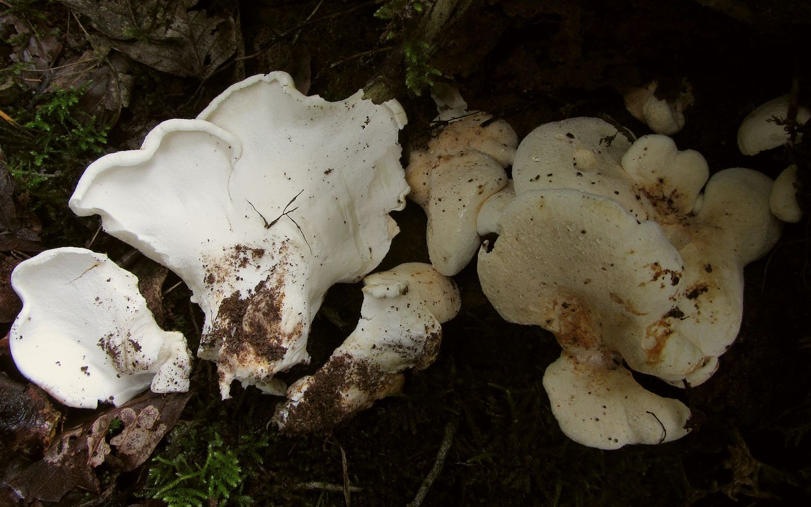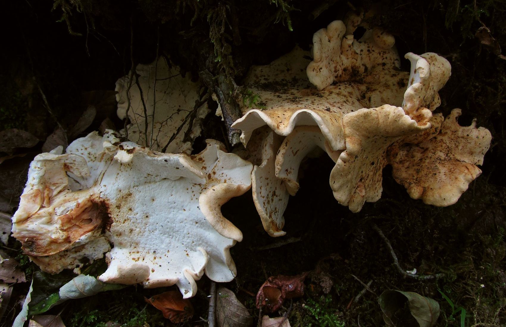 ...die hellen, nahezu weißen Fruchtkörper ließen zunächst an einen Schafporling denken - was ein weiterer Erstfund gewesen wäre. Aber Schnallen und Verfärbungsverhalten rückten das dann zurecht.