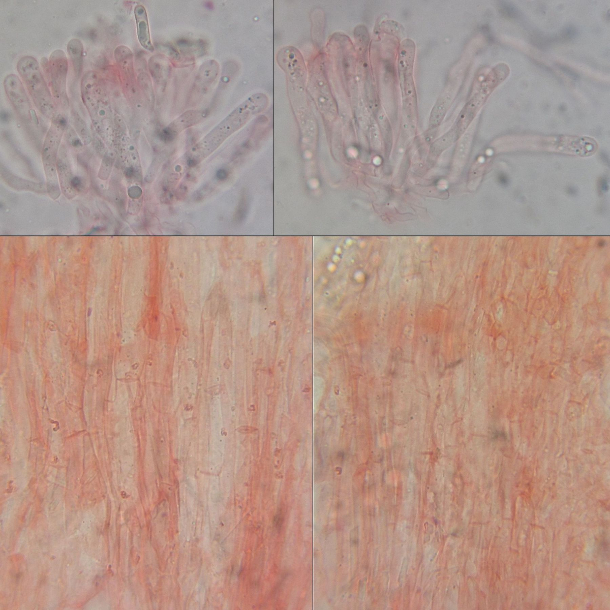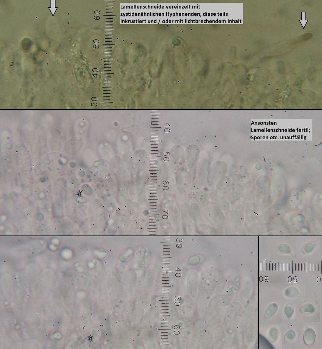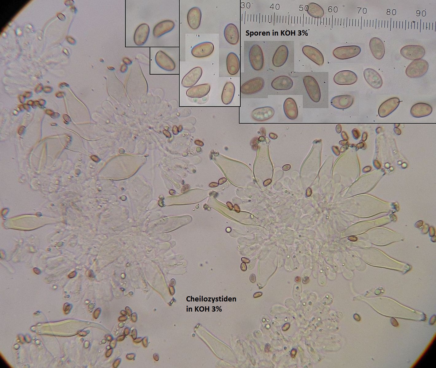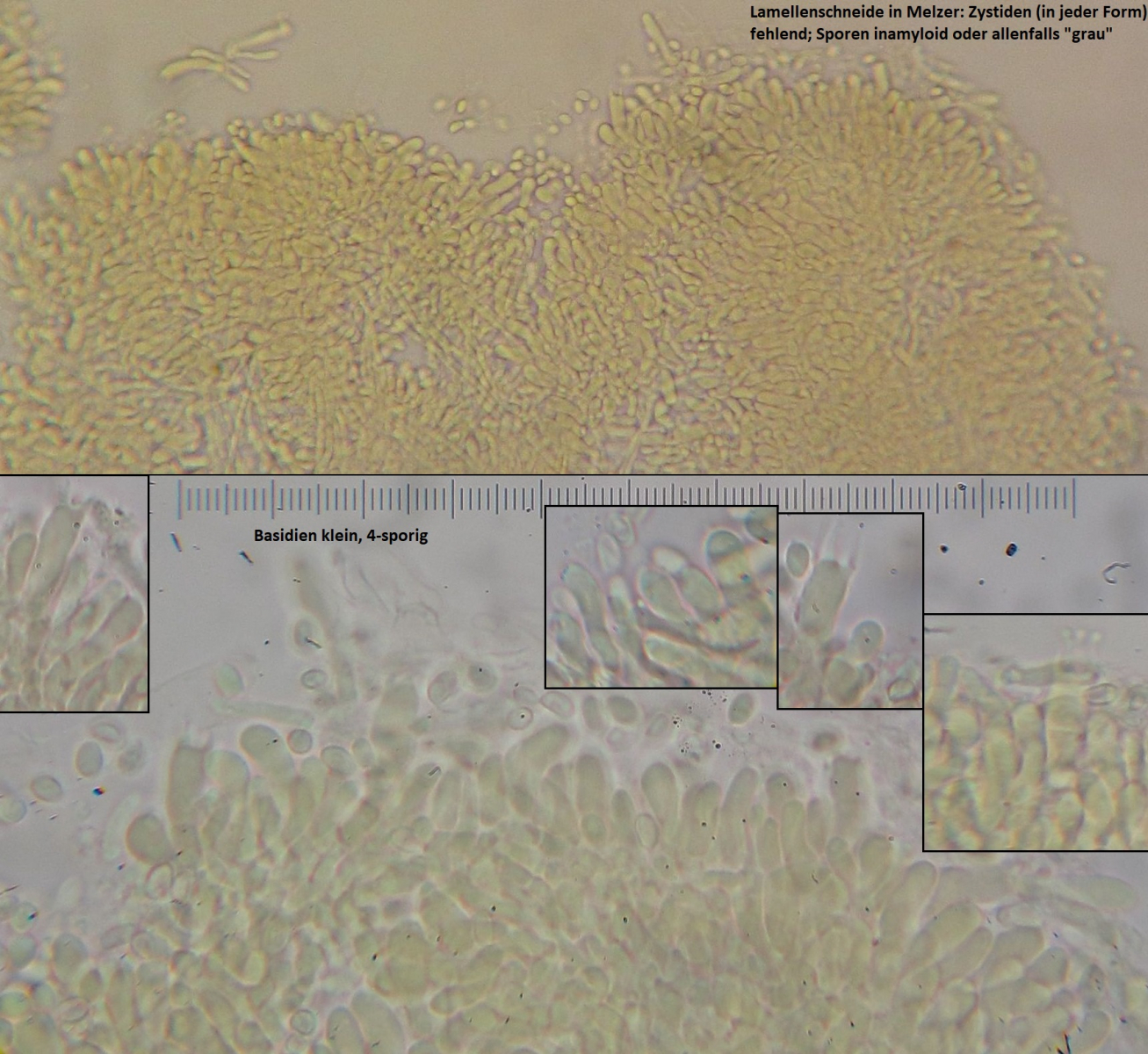 Die langzellige Lamellentrama in Verbindung mit den Sporen und dem Aussehen der Fruchtkörper ist allerdings eindeutig genug. Schade nur, daß ich die wohl immer mikroskopieren muss, wenn ich sie nicht anhand vom Knobigeruch von H. miniata etc. unterscheiden kann.