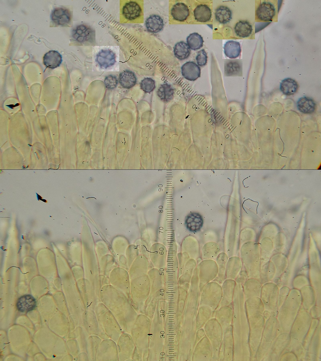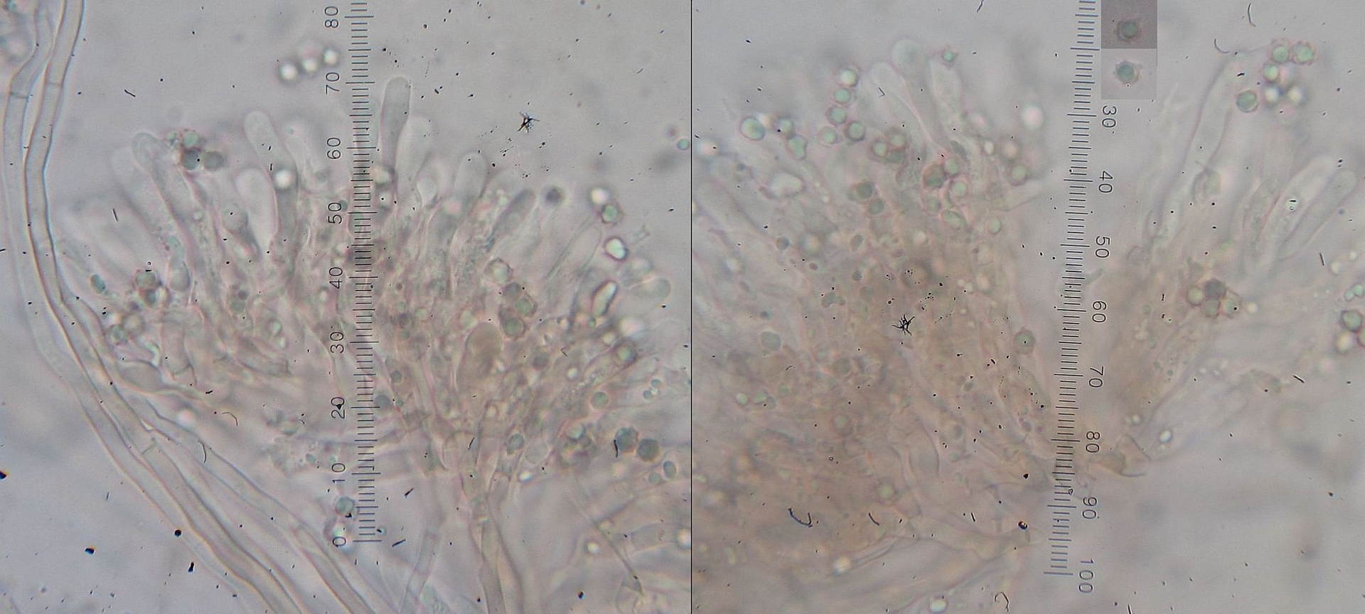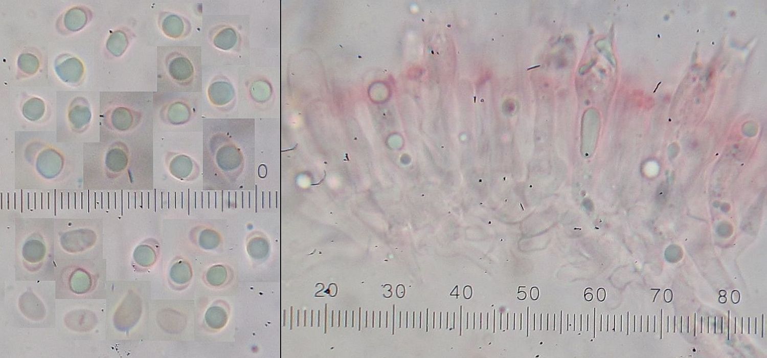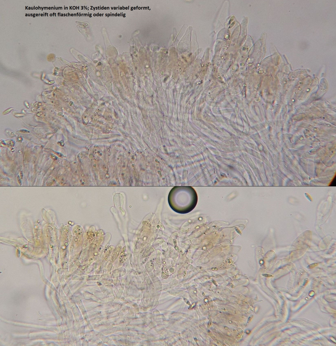 Die langzellige Lamellentrama in Verbindung mit den Sporen und dem Aussehen der Fruchtkörper ist allerdings eindeutig genug. Schade nur, daß ich die wohl immer mikroskopieren muss, wenn ich sie nicht anhand vom Knobigeruch von H. miniata etc. unterscheiden kann.