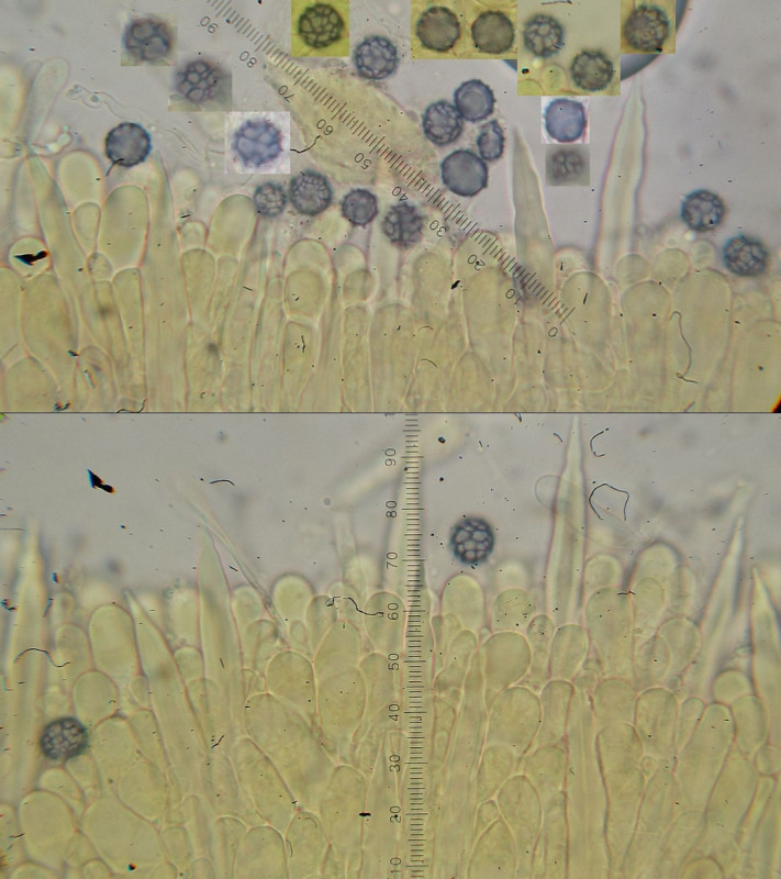 Die langzellige Lamellentrama in Verbindung mit den Sporen und dem Aussehen der Fruchtkörper ist allerdings eindeutig genug. Schade nur, daß ich die wohl immer mikroskopieren muss, wenn ich sie nicht anhand vom Knobigeruch von H. miniata etc. unterscheiden kann.