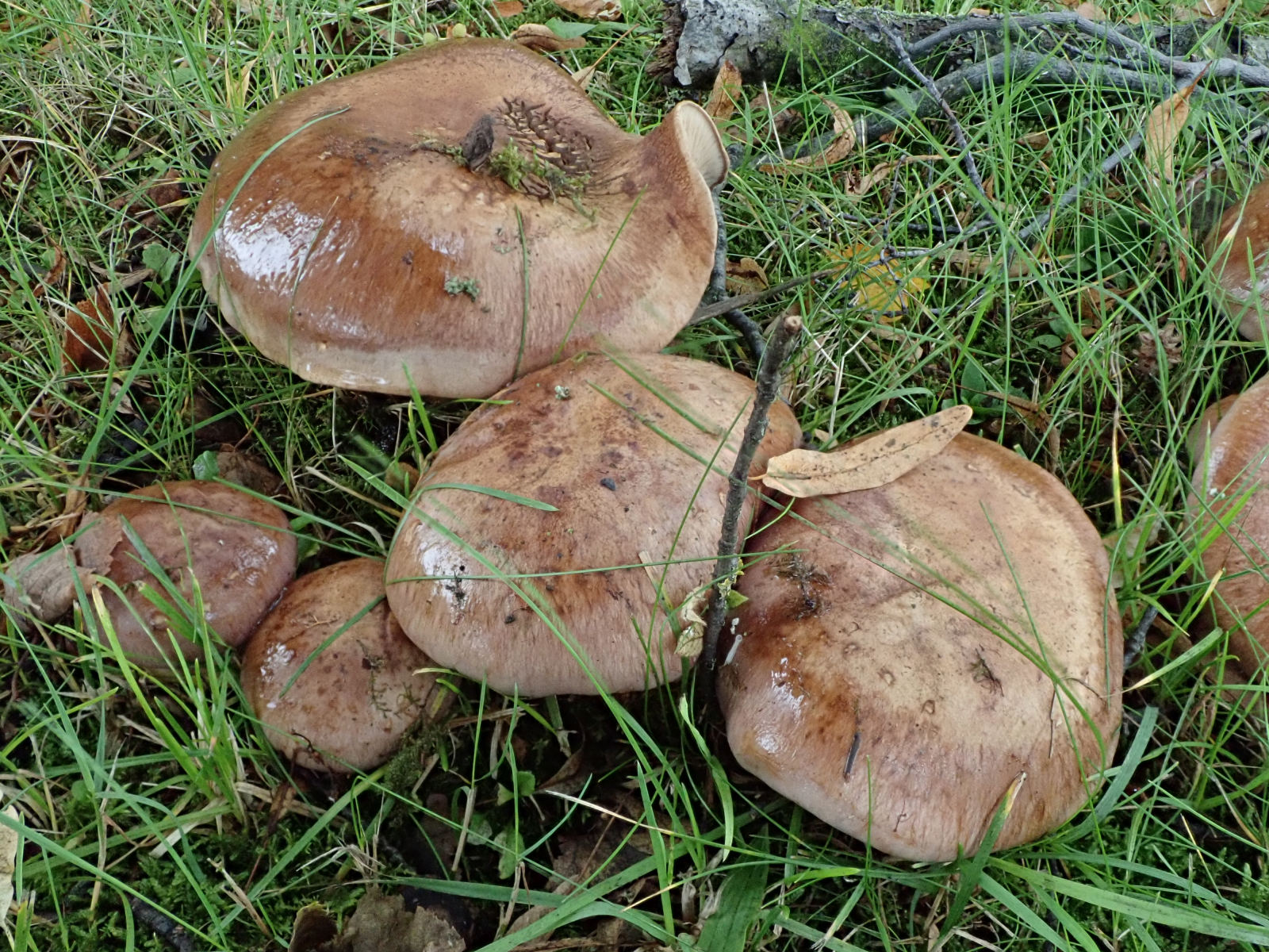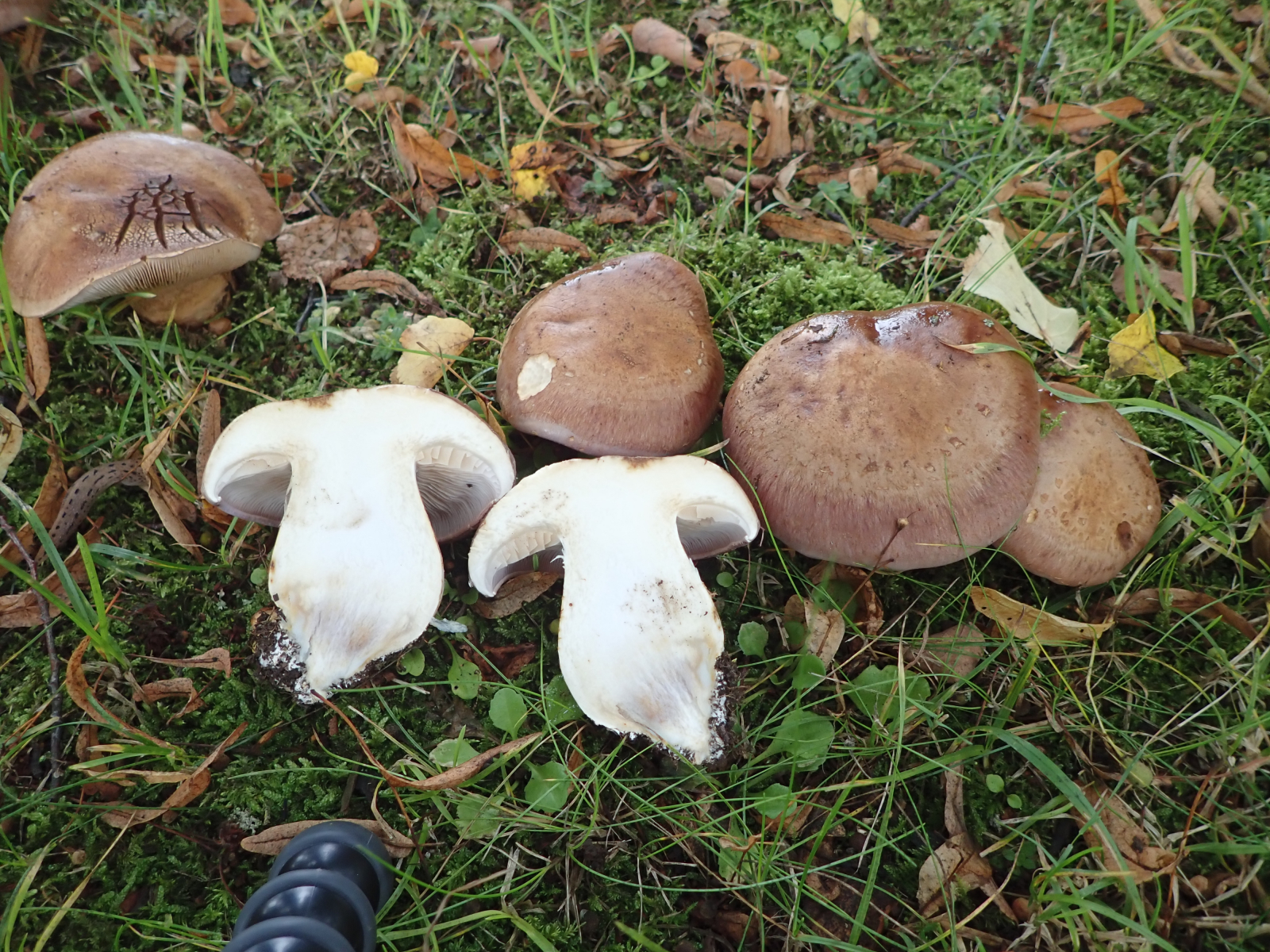 Ich war heute aber nochmal auf dem Friedhof und habe die Kollektion Schleimköpfe erneut aufgesucht. Zumindest die Anregung von Uwe konnte ich so verfolgen, ältere Exemplare hinzuzuziehen. Und dran geschnuppert habe ich auch. Der Pilz riecht nach Champignon mit einer leichten Note nach Anis. Von rote Beete konnte ich nichts bemerken. Die Lamellen sind ocker/gräulich gefärbt, wie sich jetzt auf den Bildern sehen lässt. Vielleicht geht ja mit diesen weiteren Infos auch ohne Mikrobilder oder KOH noch was. Wenn nicht, danke für's anschauen.
