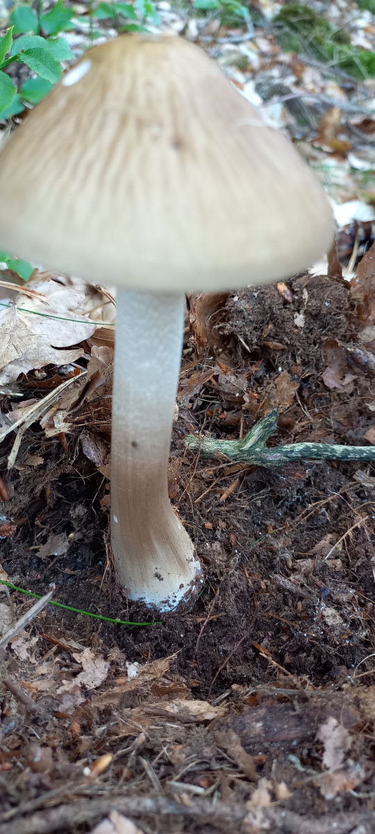 das wird ein Prachtexemplar des Grubigen Wurzelrübling Xerula radicata sein. Die lange Wurzel blieb leider im Boden.