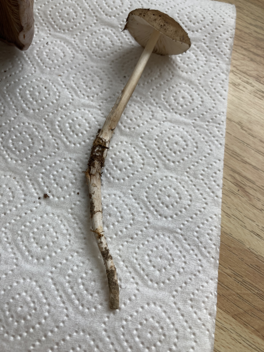 diese lange Wurzel + ziemlich markante runzelige, immer etwas klebrige Hutoberfläche -> meiner Meinung nach ist das Hymenoopellis radicata, da kommt nichts anderes in Frage.