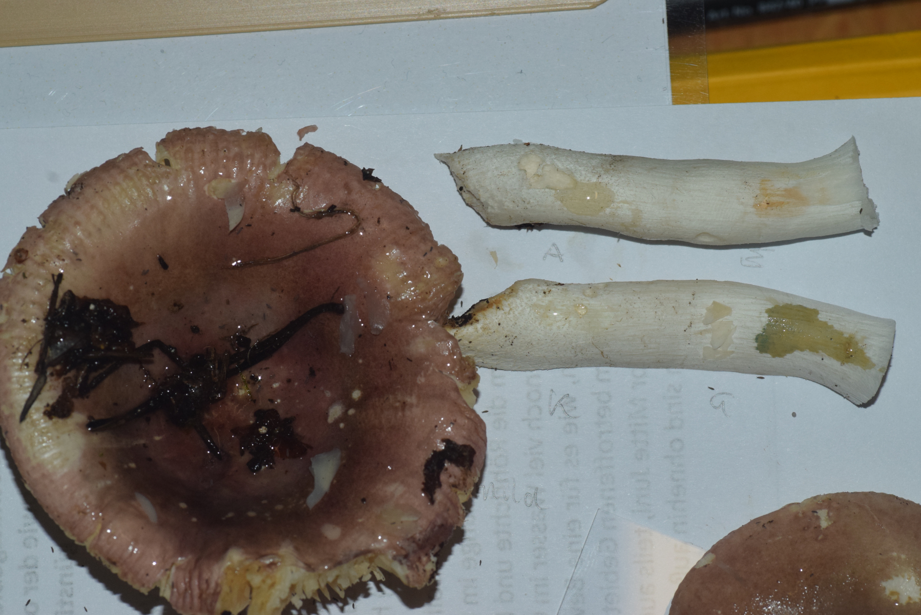 #6 Da vermute ich einen ausgeblassten Buckel-Täubling R.caerula. Mildes Fleisch aber bittere Huthaut, bzw. Sulfovaniilin positiv auf der Stielrinde zum Beweis.