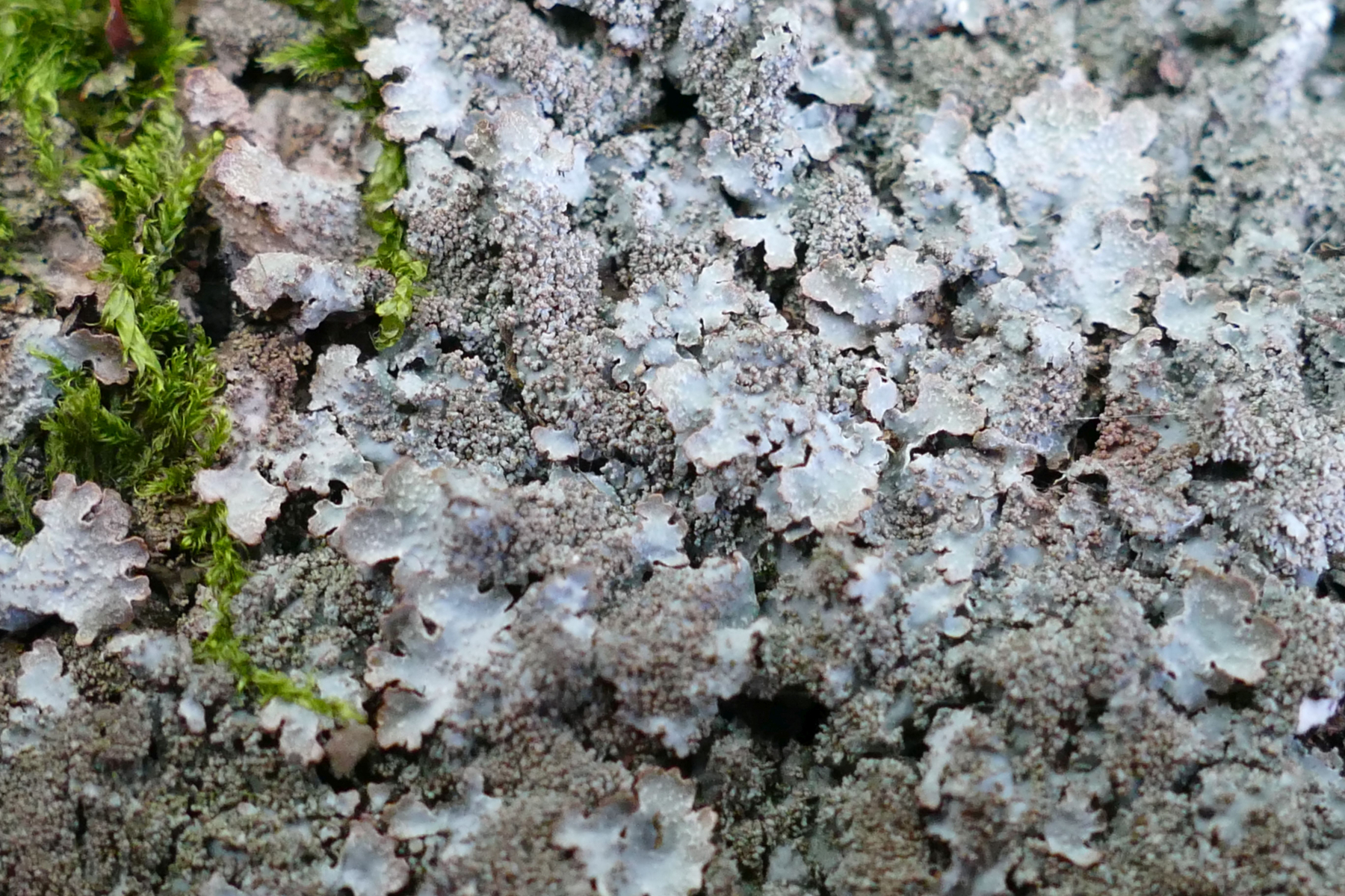 Parmelia saxatalis (Bild 1&2) mit schönen braunen Lobenrändern, weißlichen Netzadern und Isidien (und tatsächlich auch auf Stein) gefunden: