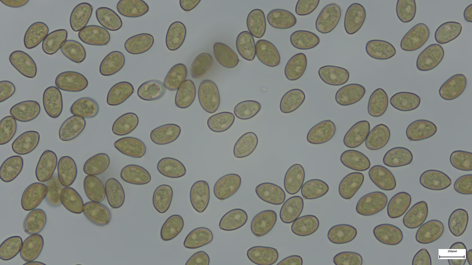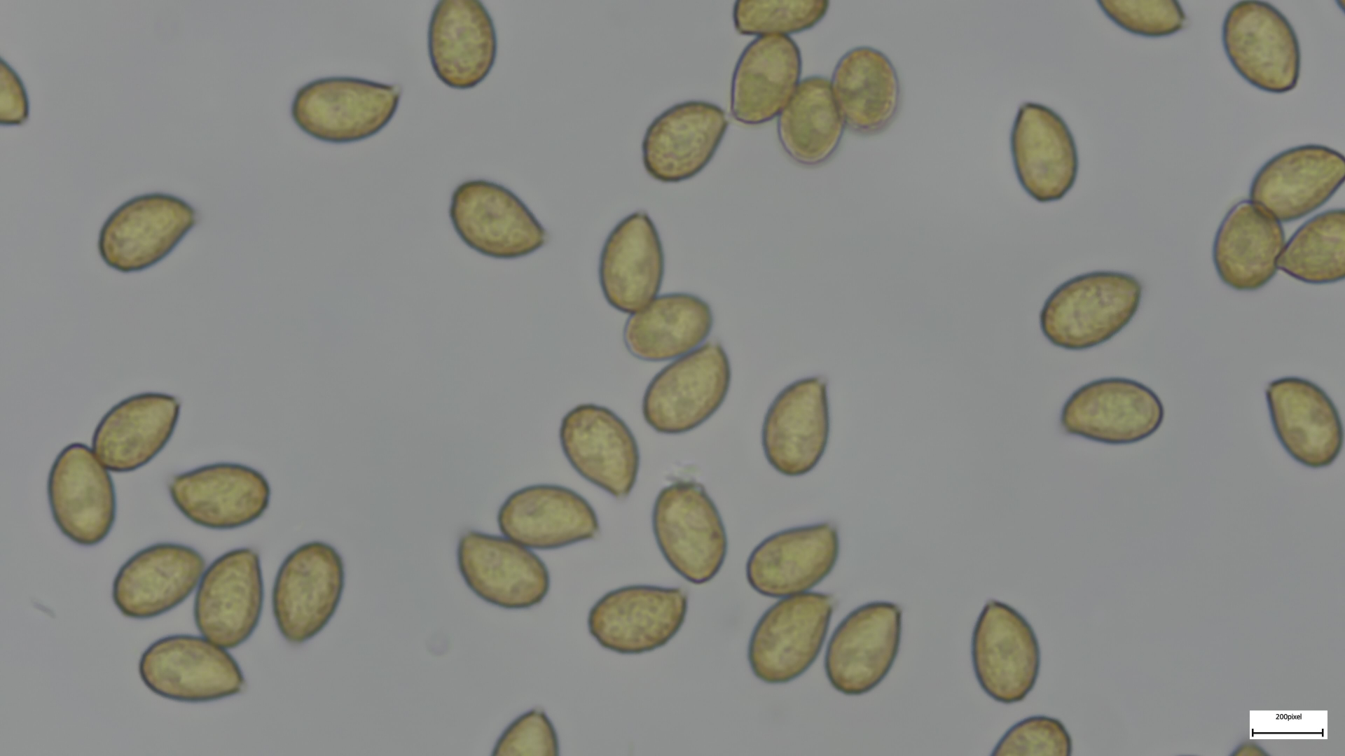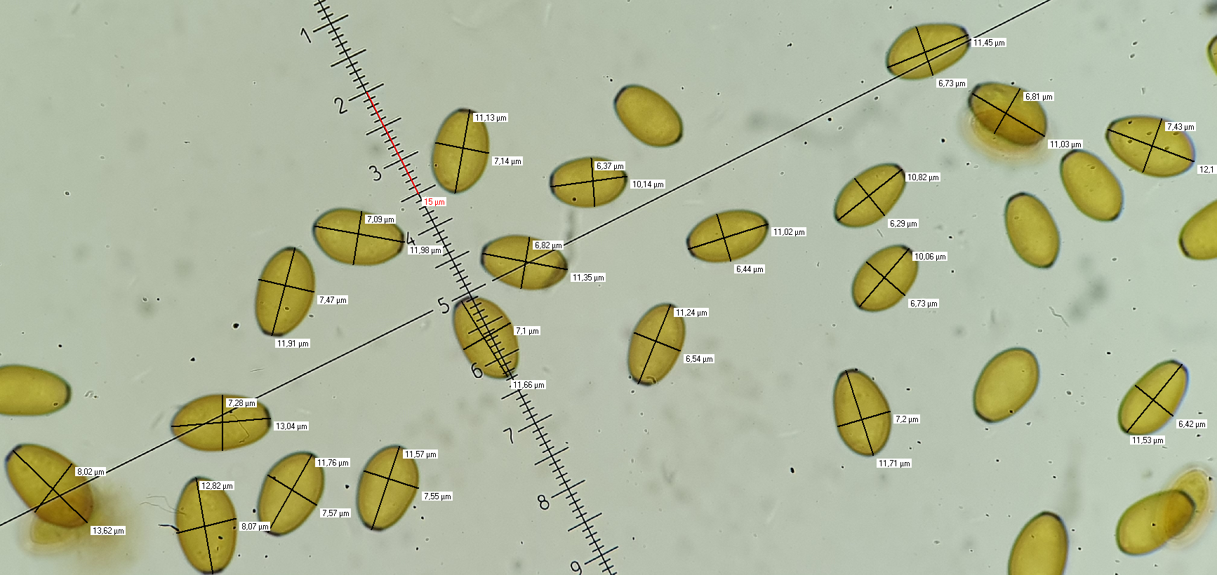 Sporen groß 13,2x8, mit Keimporus, Form siehe Bilder:
