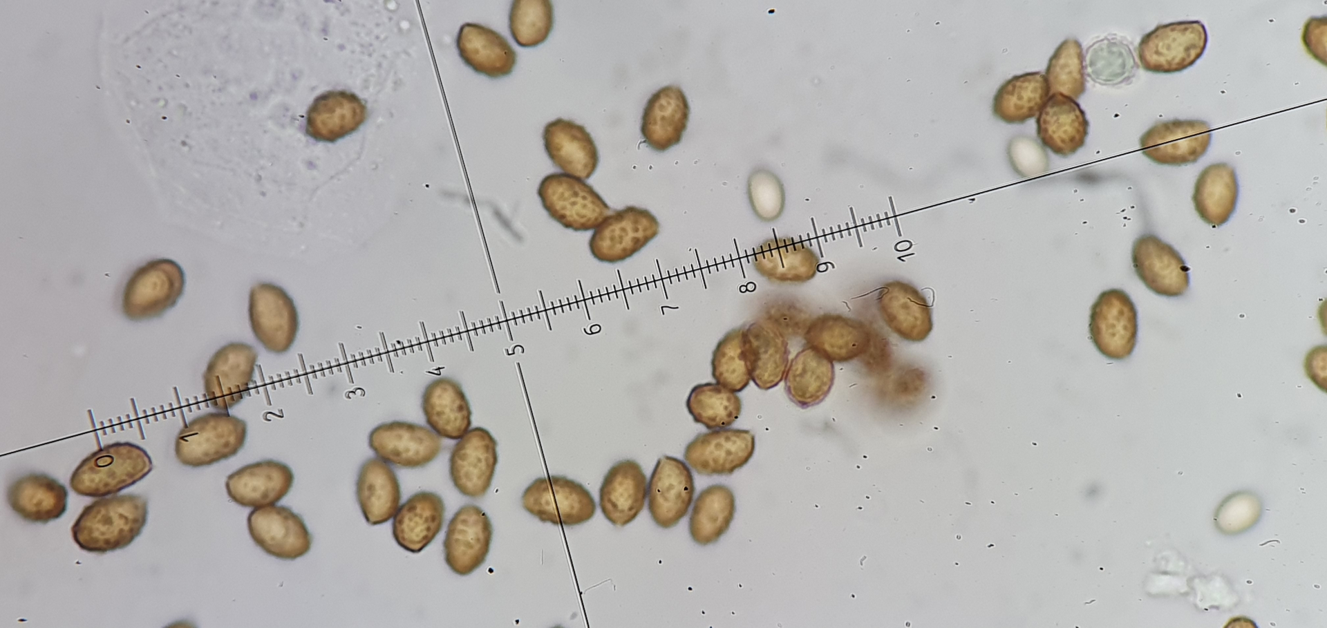 also, ich habe mir das mit Bolbitius nochmals in mehreren Quellen angeschaut. Zudem habe ich nochmals die Sporen aus dem Abwurf ausgemessen. Zudem auch den auffallend breiten Keimporus (letzterer liegt bei 2,3-2,5µm!!!)