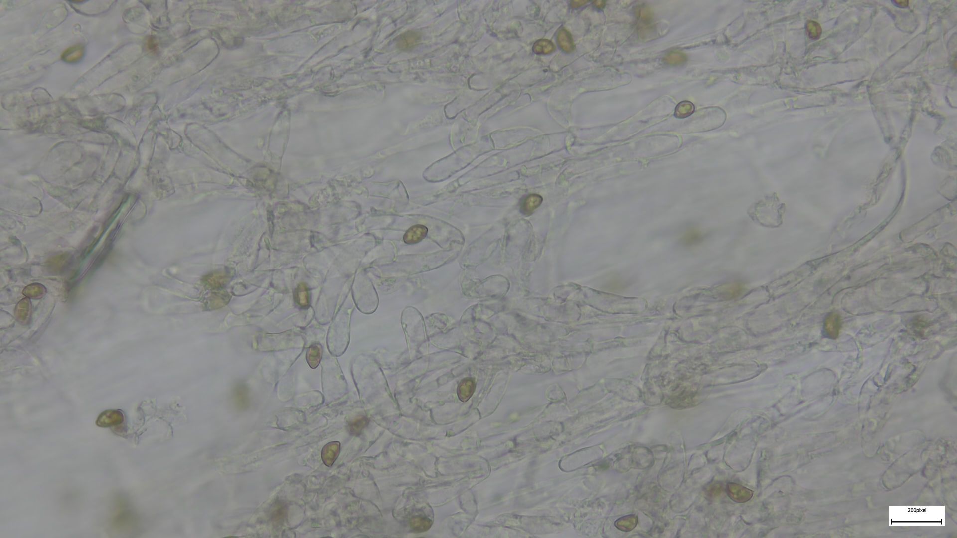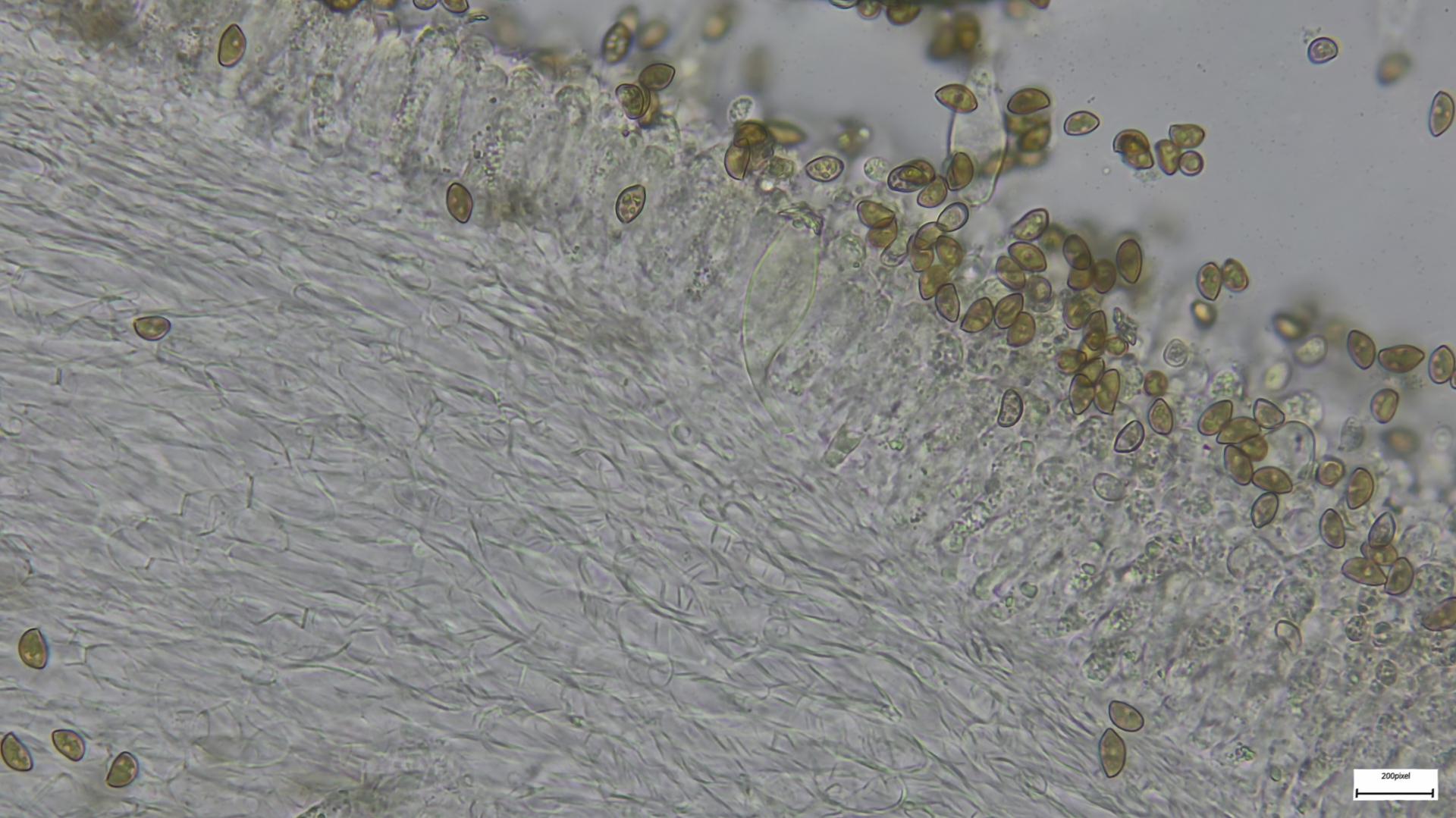 Sporen deutlich tropfenförmig 7x4,5µm, inamyloid: