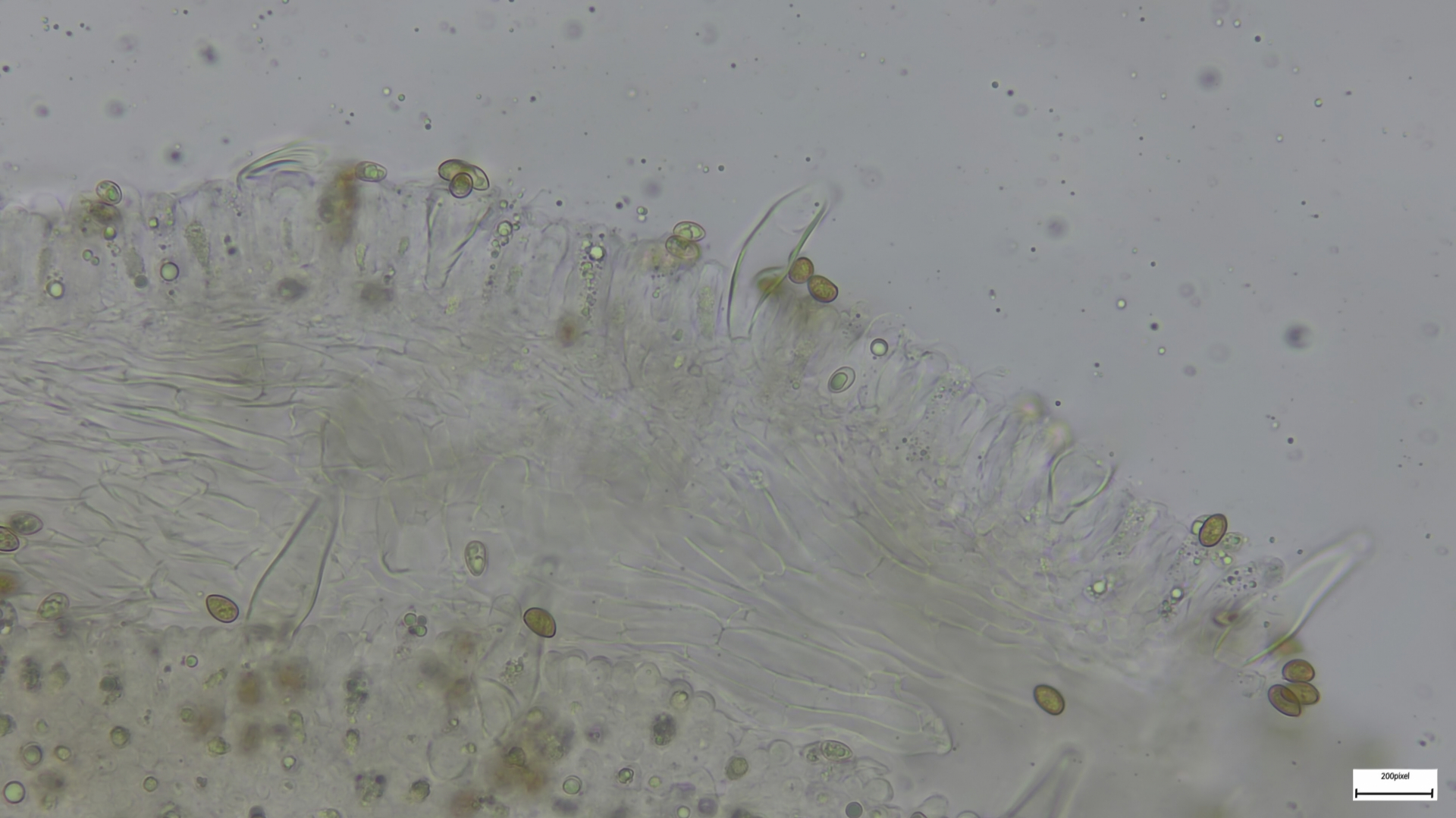 Sporen 9,5x5,3 phaseoliform, wie es sein soll, Cheilos keulenförmig, keine Pleuros