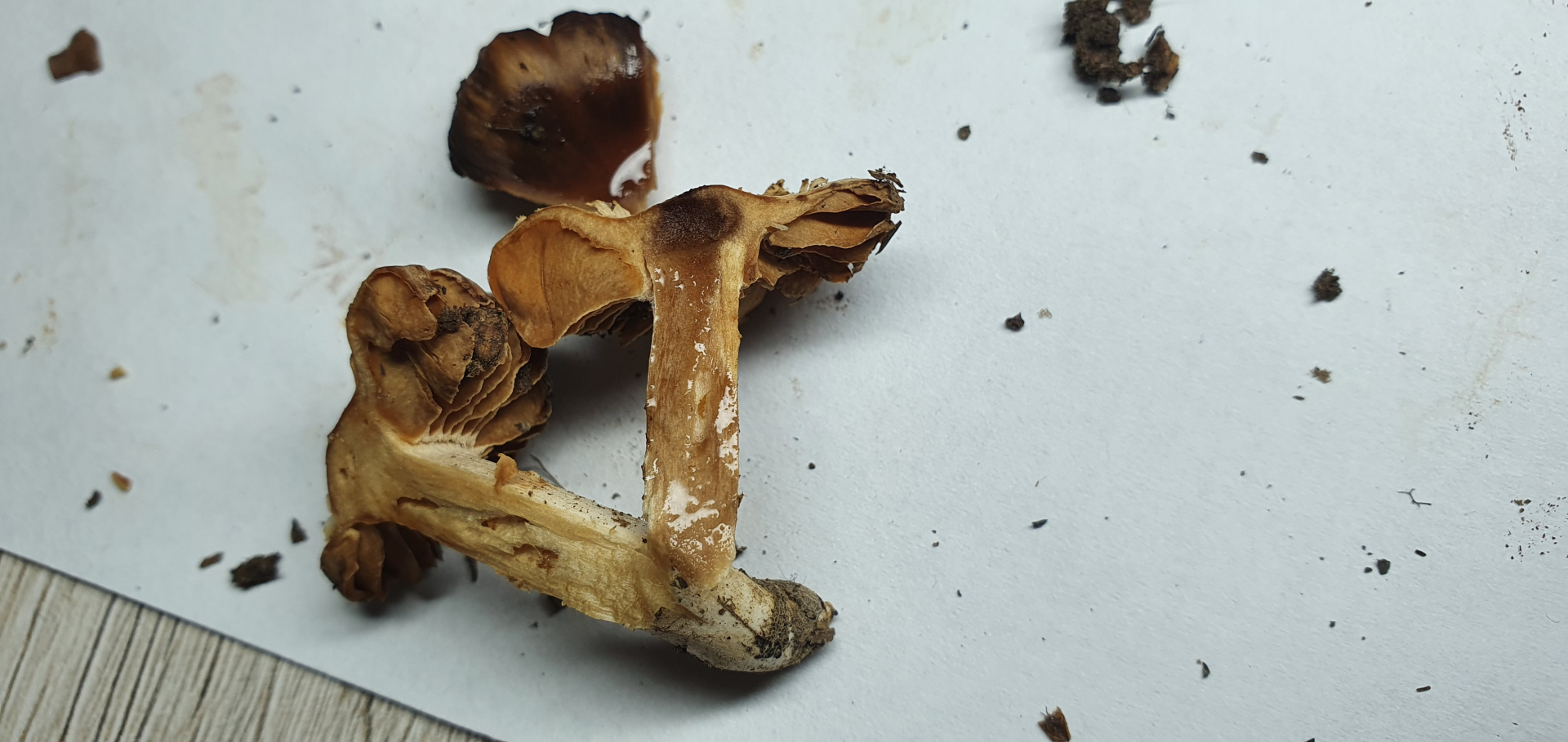 Lamellen gerade angewachsen, bräunlich (Originalfarbe? - Braunsporer):