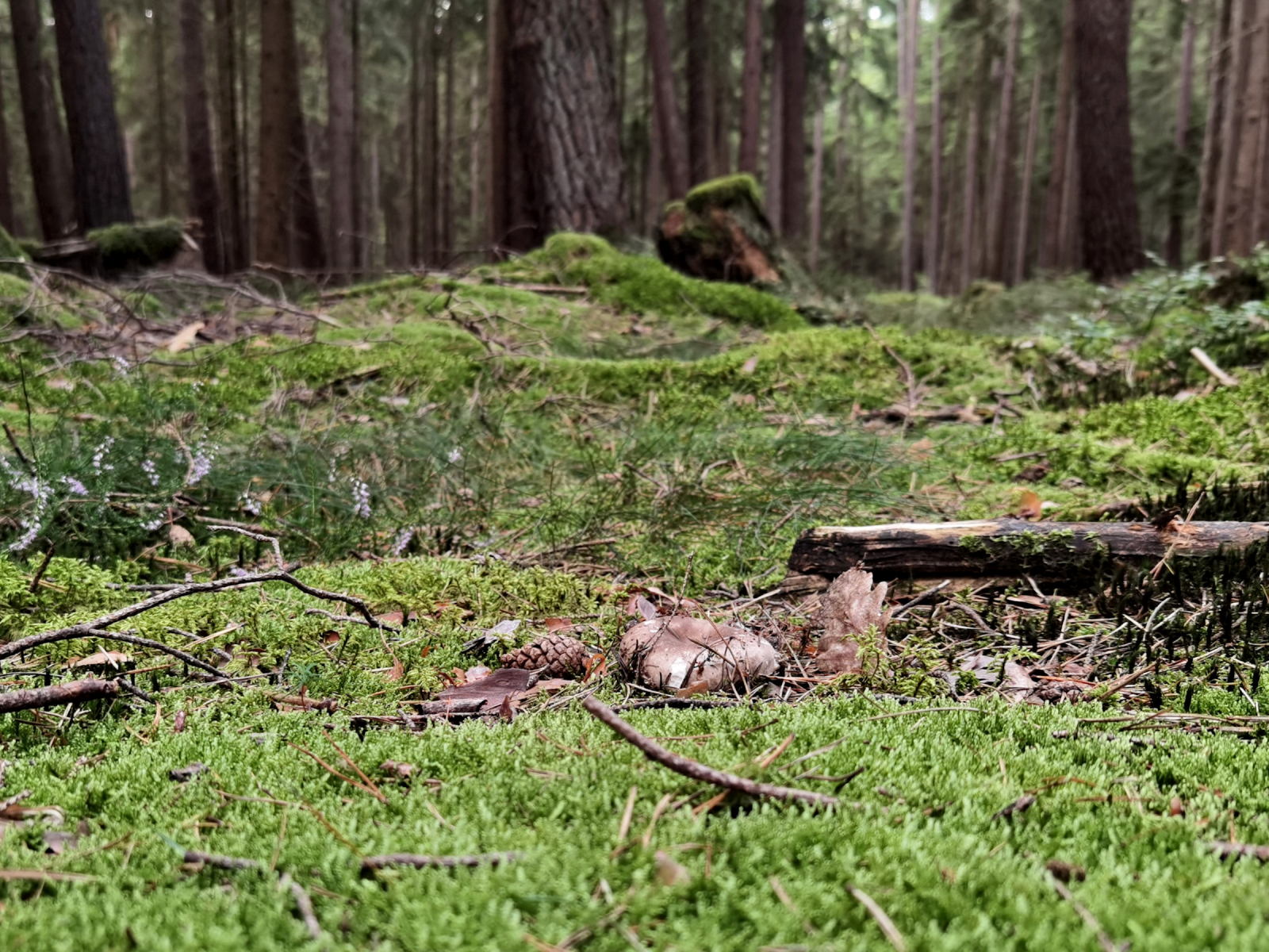 1) im Moos bei Fichten und Kiefern