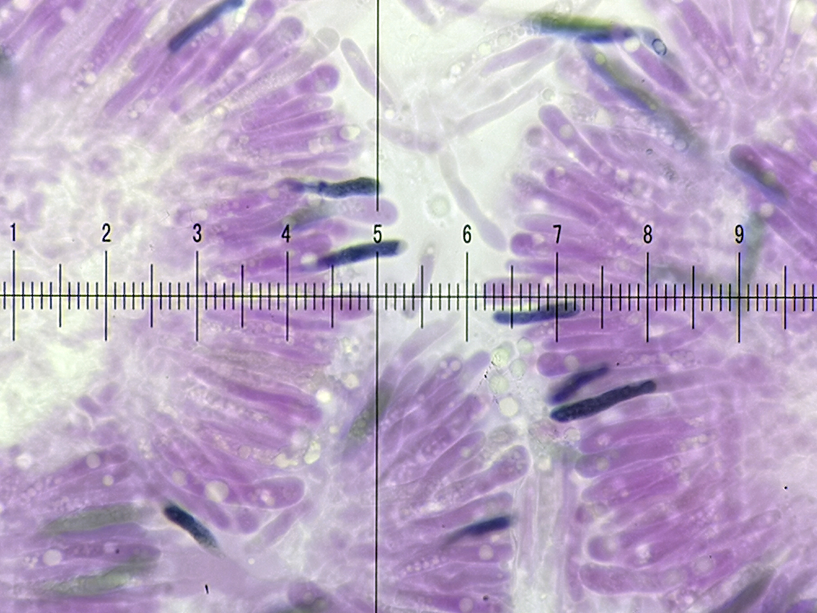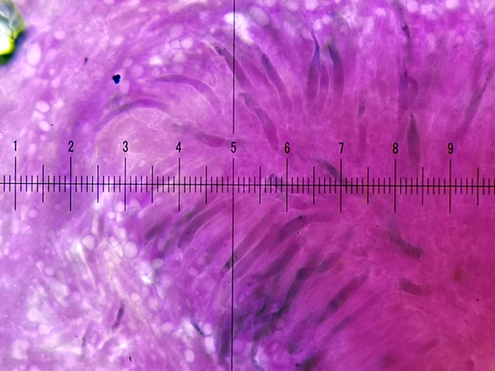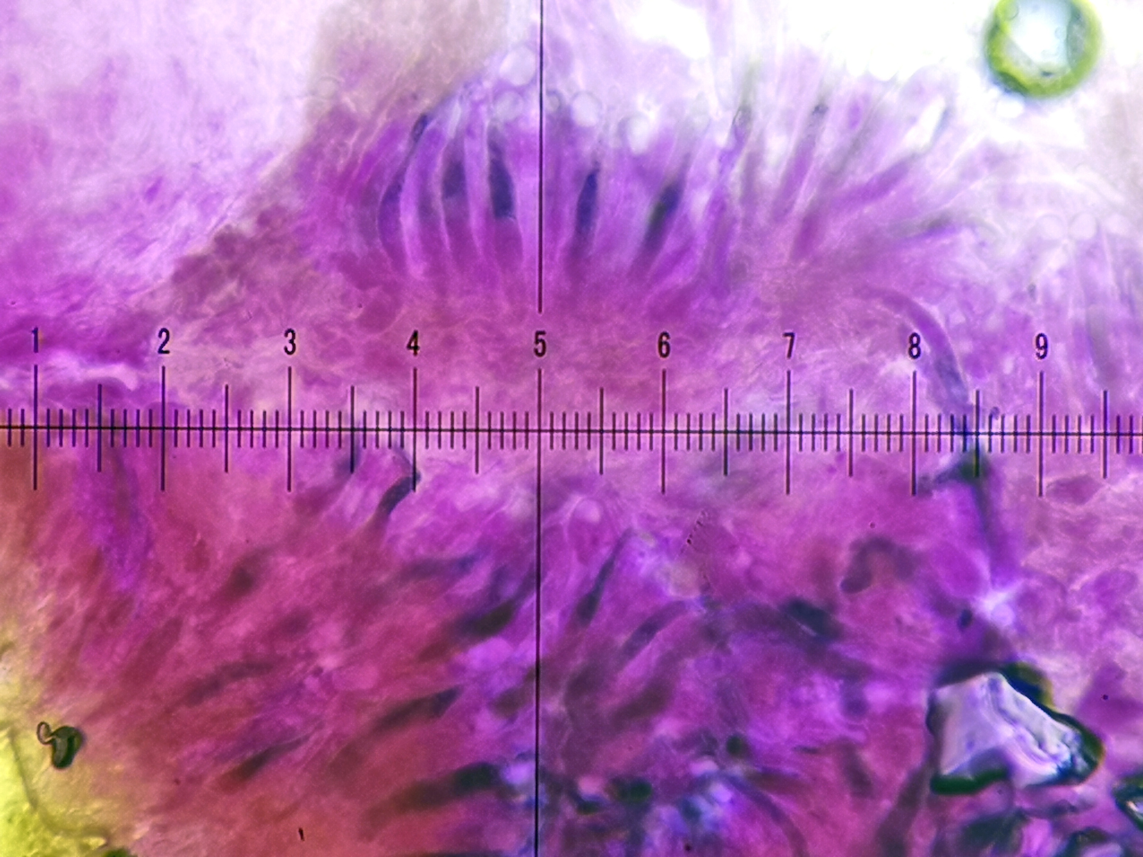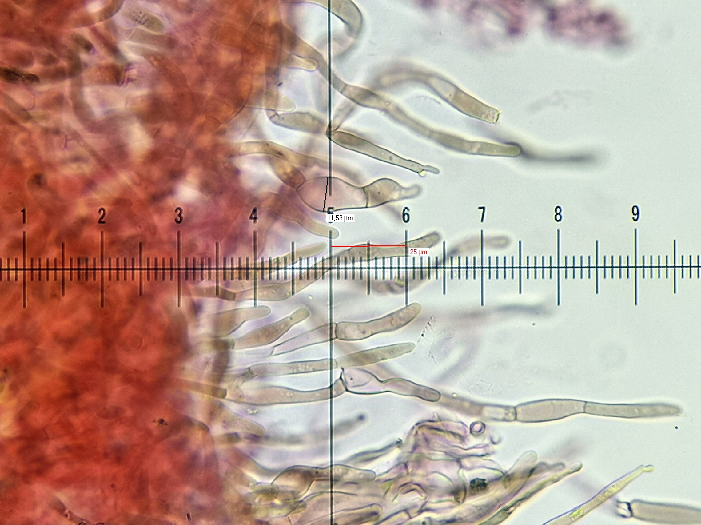 11) SV, spärliche Dermatozystiden in der Huthaut schwach eingefärbt