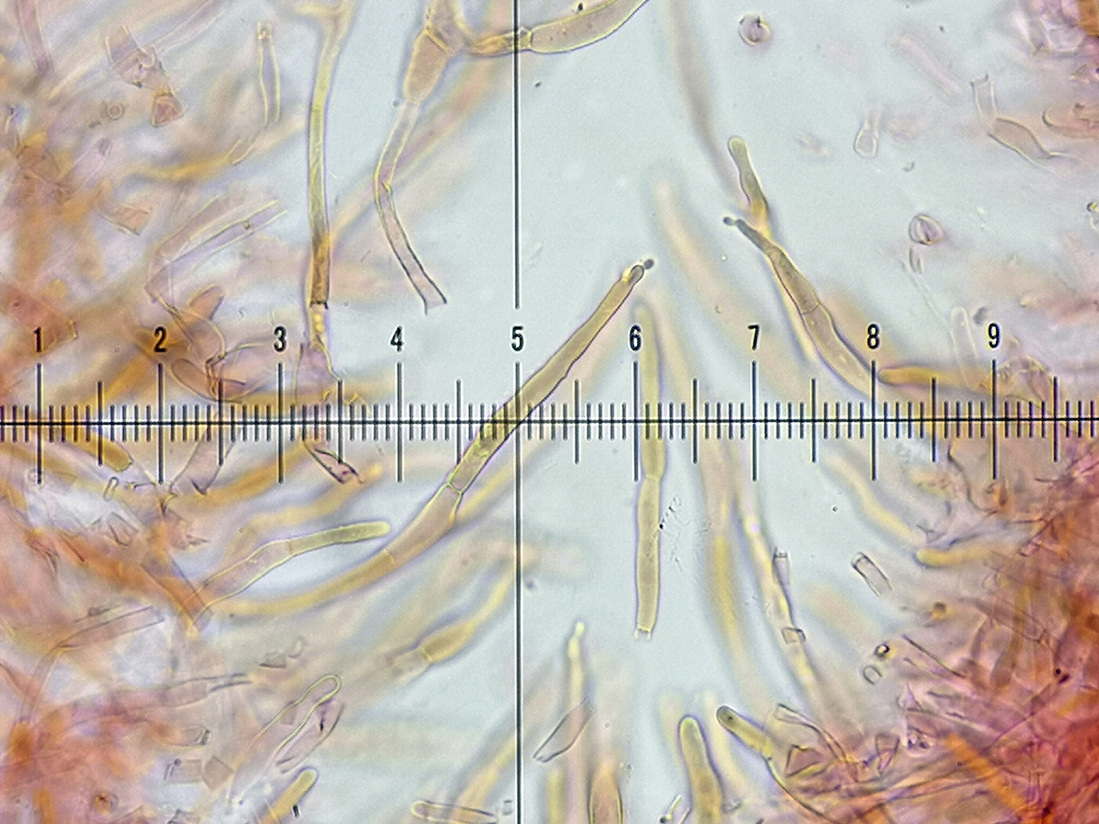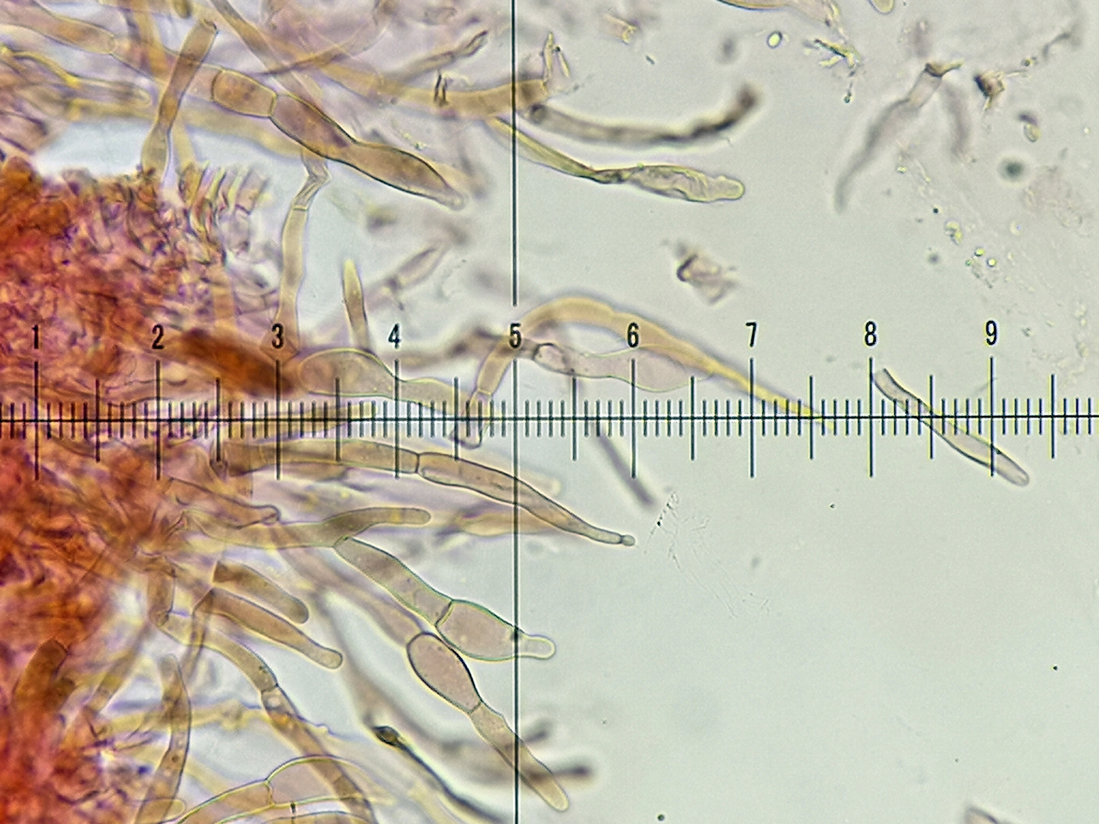 16) Kongo, zwei Pileozystiden spitz zulaufend und oft kopfig, auch zweifach kopfig vorkommend