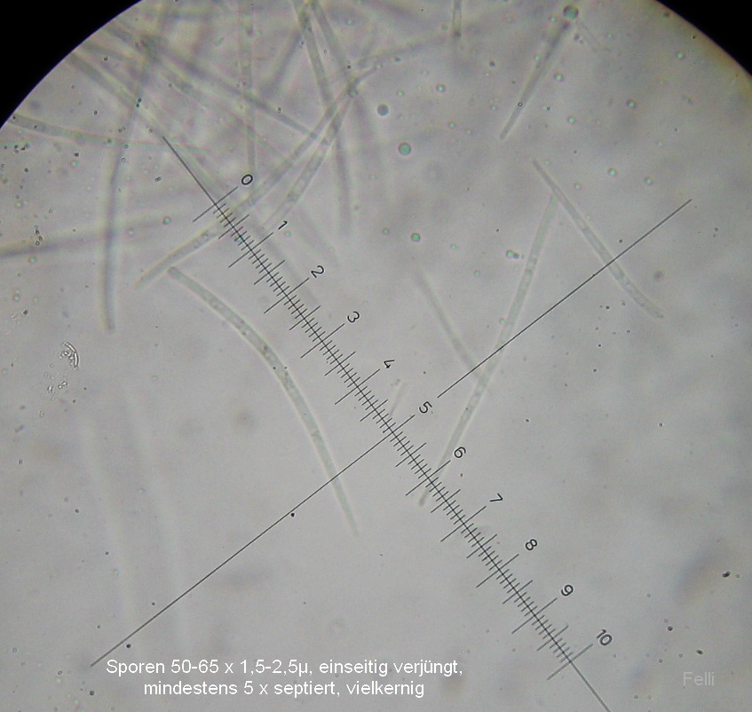 50-65 µ langen,beweglichen( gebogen)- nadelförmigen Sporen