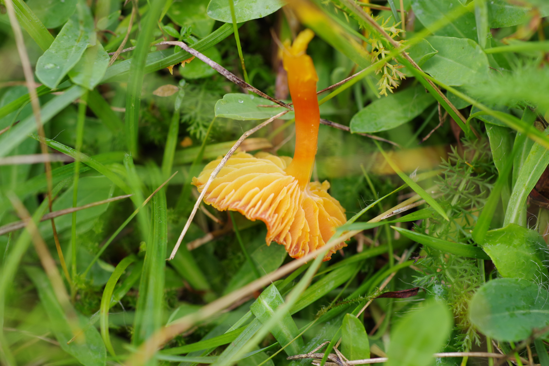 da es zu den gestern gezeigten Bildern sehr viele interessante Vorschläge gab, war ich heute erneut auf der Wiese, um die gestrigen Pilze wiederzufinden, über Nacht hat es geregnet und einige Arten sollen ja im feuchten Zustand etwas andere Eigenschaften haben. Dabei sind auch wieder eine ganze Reihe neuer Arten dazu gekommen, die ich jetzt kurz zeigen möchte, teilweise nur mit Einzelbildern. Einige der Arten von gestern, die mit plausiblen Arbeitstiteln, stelle ich dann in separate Threads.