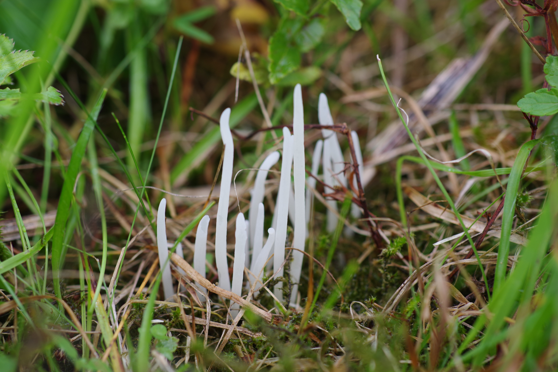 9) Clavaria fragilis, sehr brüchig, an mehreren Stellen auf der Wiese, im dichteren Gras auch bis 10 cm groß