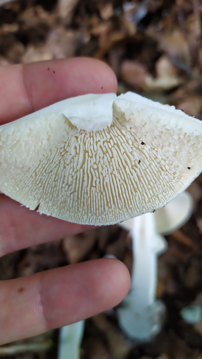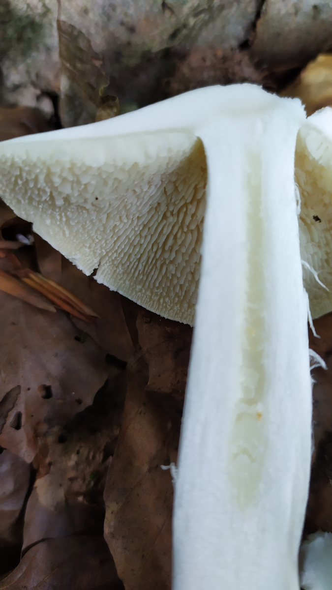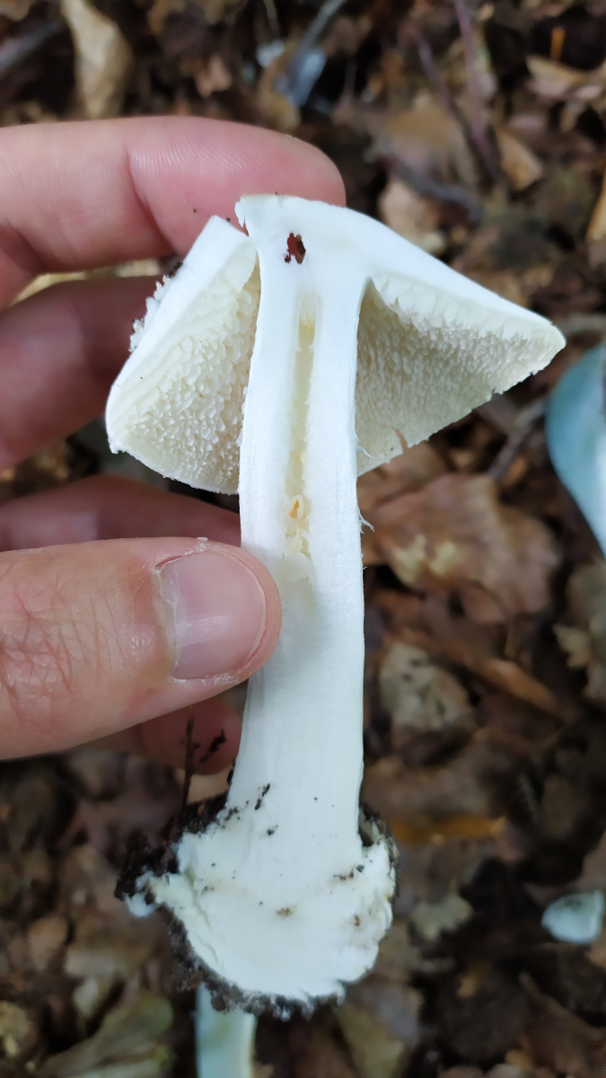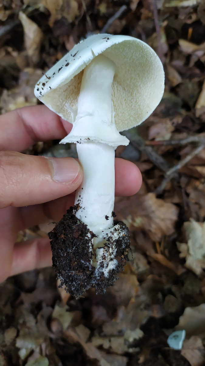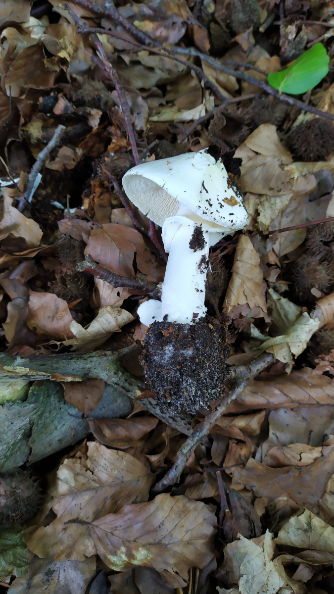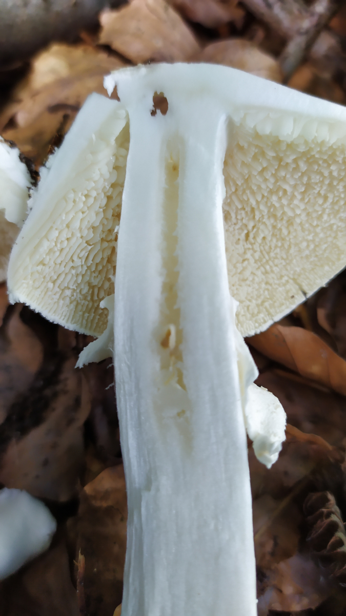 Kann es die var. Alba des gelben knollenblätterpilzes sein? (Ganz leichte gelb töne waren auf dem hut vorhanden. Oder bin ich völlig auf dem holzweg?