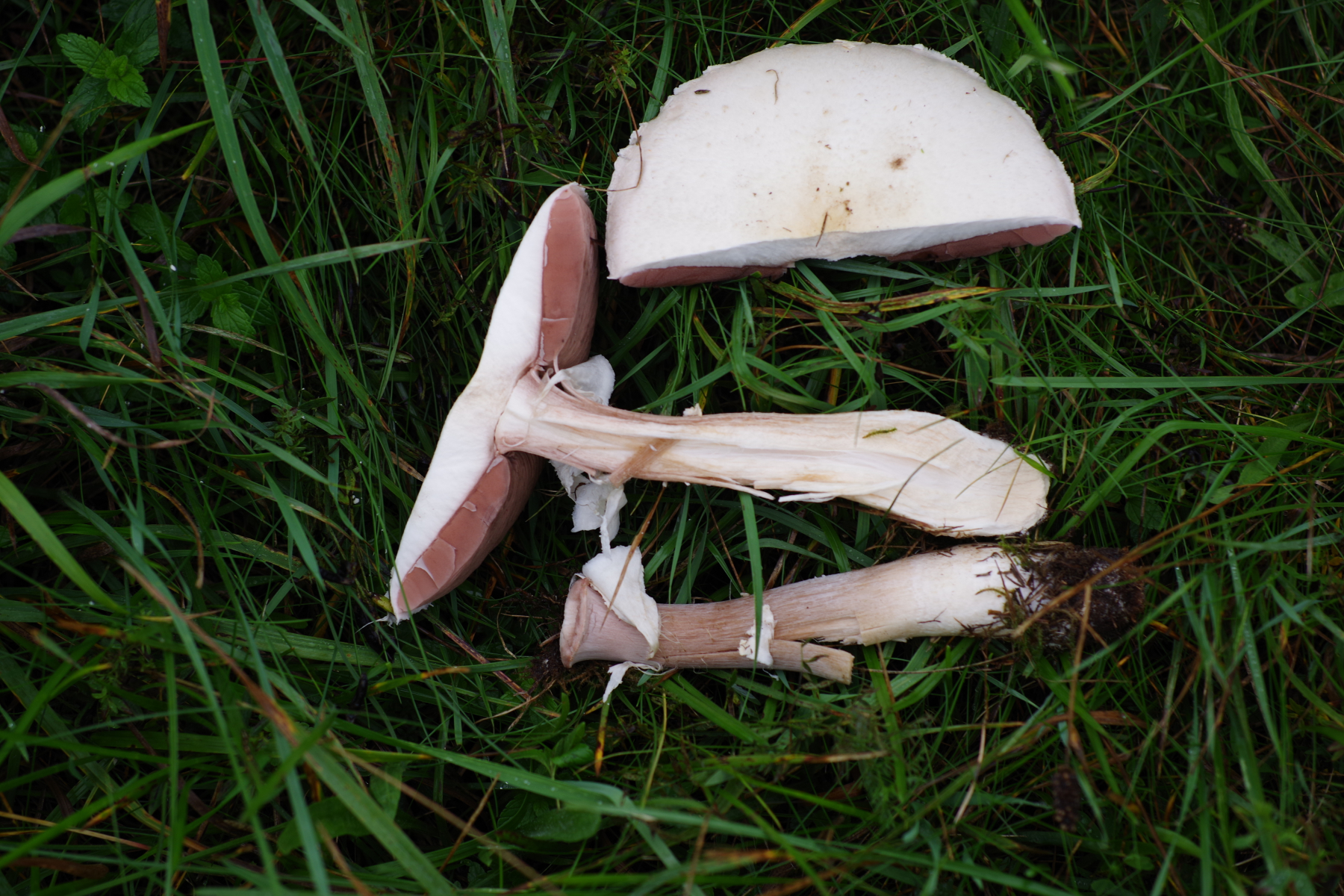 dein Champi kann auch gut einer aus der Sektion Agaricus sein, wo auch der Wiesenchampi enthalten ist. Ohne weiteres kommst du da sowieso nicht bis zur Art.