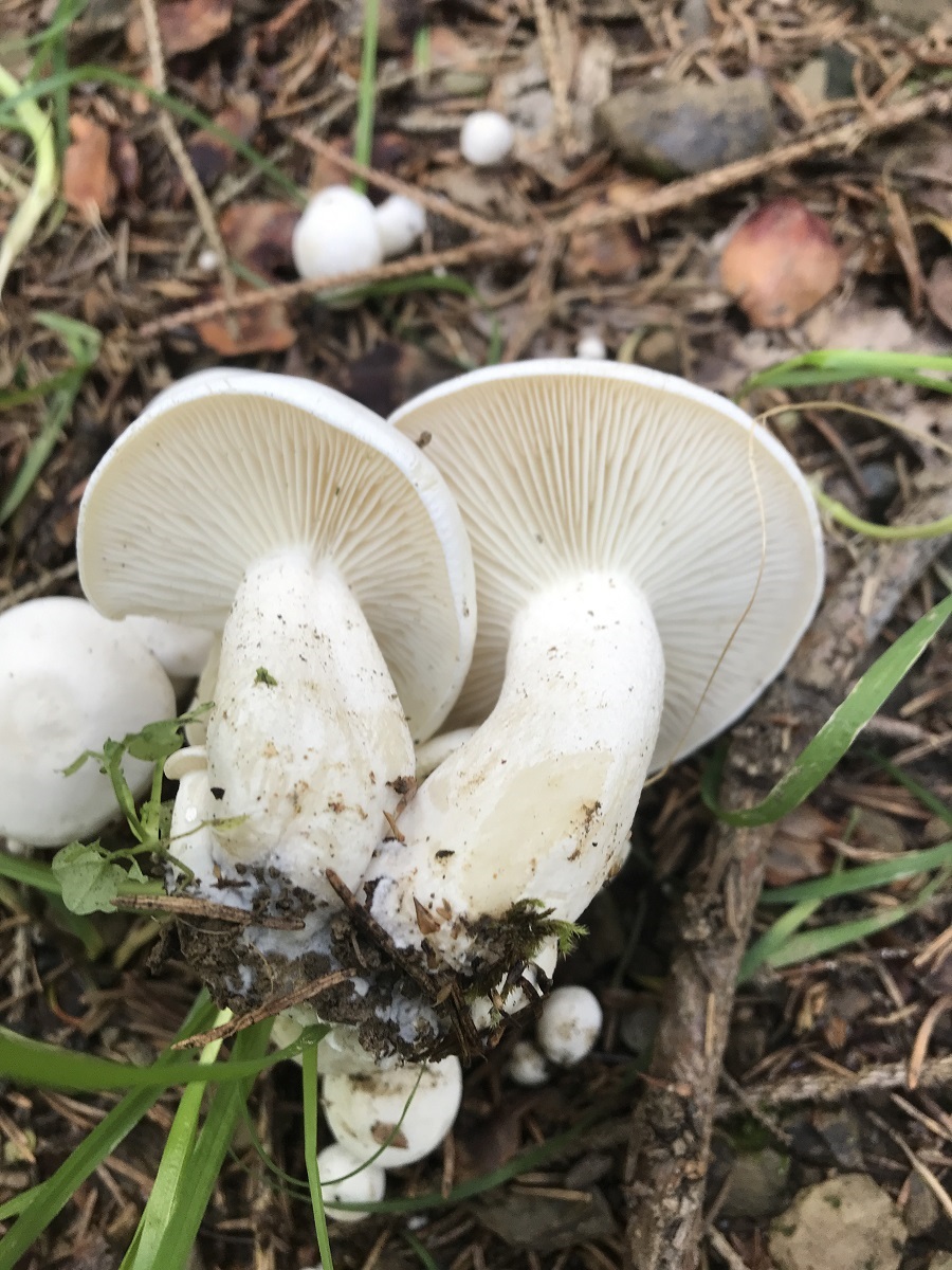 Hallo, heute habe ich im Fichtenwald eine Gruppe von über 50 weißen Lamellenpilzen entdeckt. Alle knackig frisch und schön anzusehen. Aber ich kann sie nicht richtig zuordnen und bitte um Hilfe.