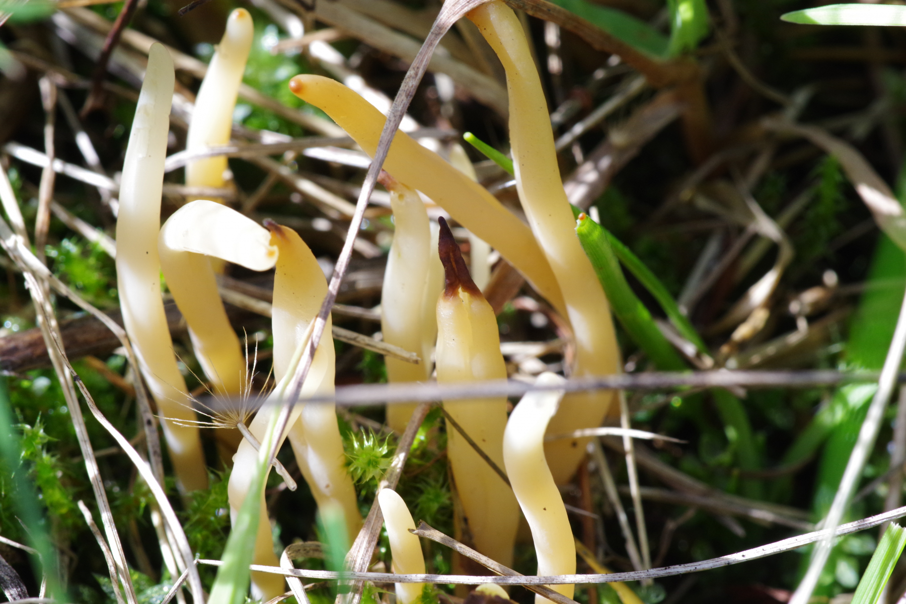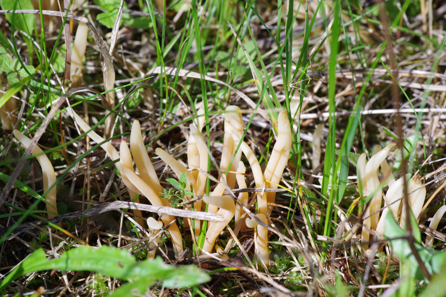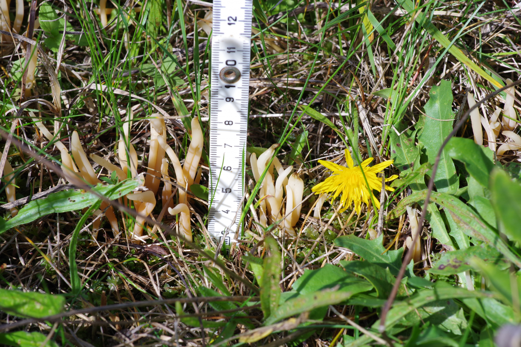 die unklare Wiesenkeule aus dem Beitrag ( Einiges von der Wiese, Teil II. Nr.4 ) habe ich heute an drei weiteren Stellen gefunden. Die Ausleuchtung war recht kompliziert, da ständig Wandel von praller Sonne zu Schatten. Einiges ist überbelichtet. Teilweise habe ich auch absichtlich mit verschiedenen Lichtverhätnissen fotografiert, in der Hoffnung dass der Gesamtfarbeindruck besser rüber kommt.