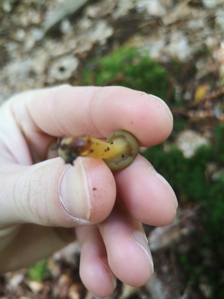 vergleiche mal mit dem Grüngelben Gallertkäppchen Leotia lubrica.