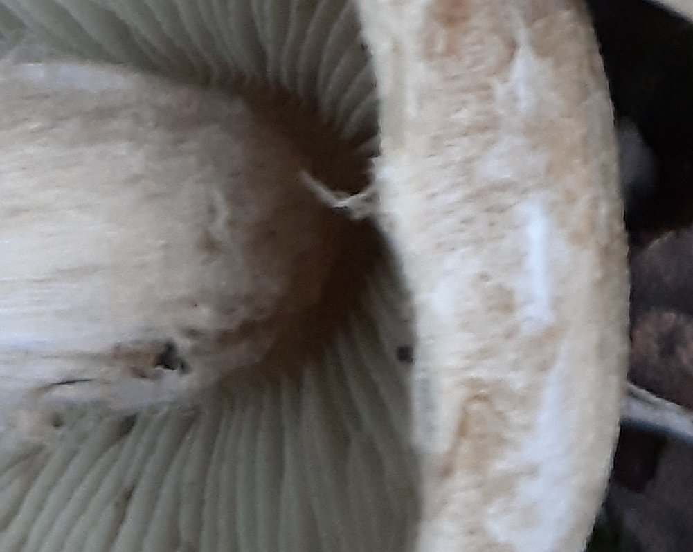 Die Lamellen werden bei alten Pilzen nicht schwärzlich, sondern nur graubraun (genaue Sporenpulverfarbe habe ich dann morgen).
