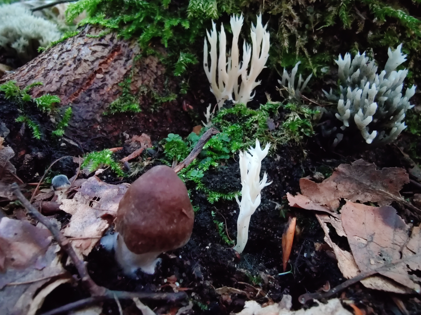 Die Pilzwelt zeigte mir mal wieder eindrucksvoll wie wenig Ahnung ich von ihr habe. Die Mehrheit der Pilz konnte ich nicht ansatzweise namentlich ansprechen. Da ich auch nur ca. eine Stunde Zeit hatte, beschloss ich einfach mal die Eindrücke zu genießen und die Bestimmung blieb weitestgehend außen vor. Ich versuchte einige Bilder einzufangen, da ich aber von Fotografie noch weniger Ahnung habe und nur mit dem Smartphone knippste, kommt die Schönheit leider nicht ganz rüber.