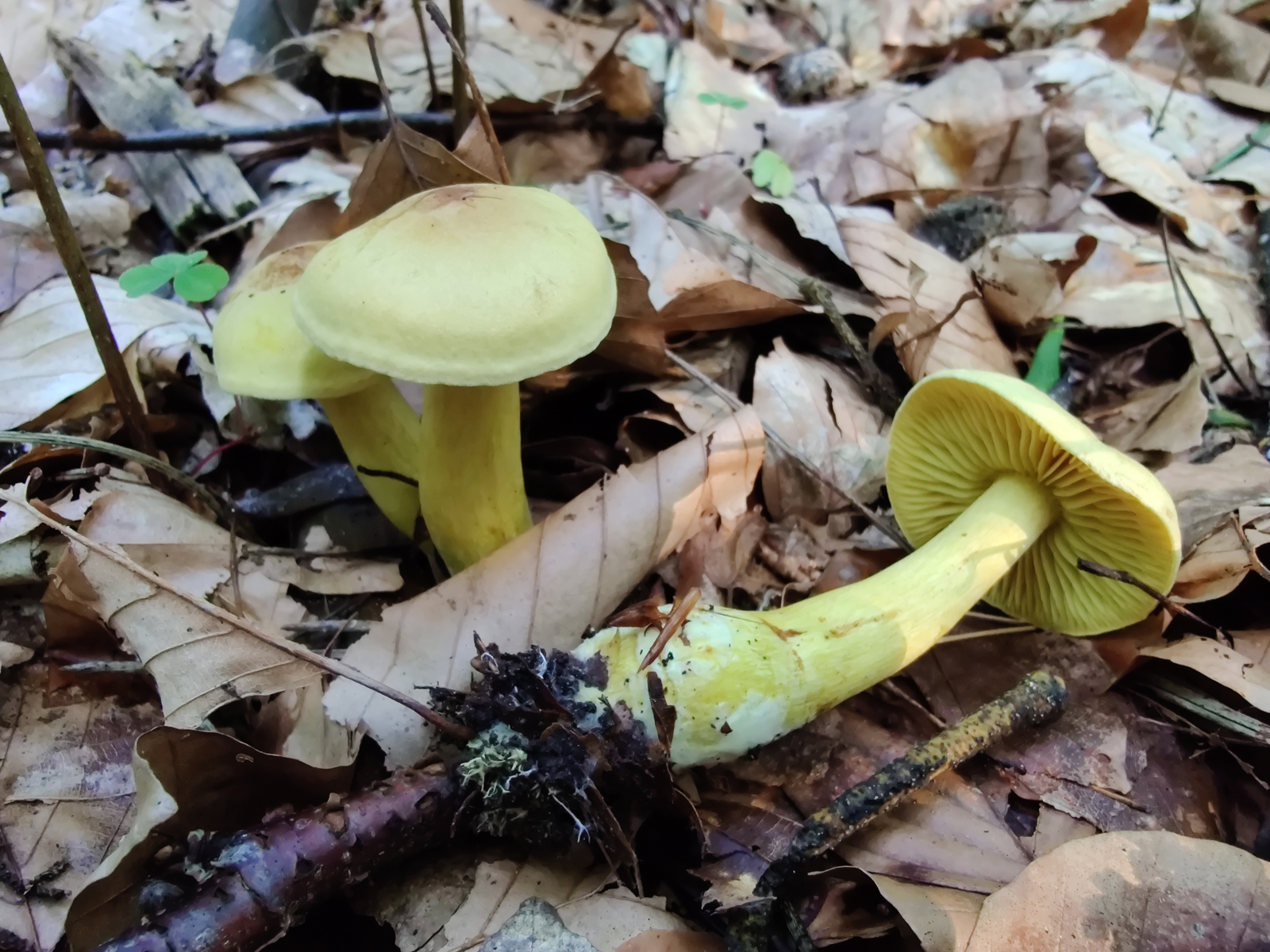 heute war ich gegen Abend mit dem Rad nach längerer Zeit mal wieder im Wald. Auf den ersten Blick war nicht so viel los. Die typischen Speisepilze und Mykorrizha bildenden Pilze waren kaum vertreten. Vereinzelt zeigte sich eine einzelne Amanita wie der Grüne oder Gelbe Knollenblätterpilz. An Röhrlingen konnte ich nur einen Raufuß finden. Unglaublich war jedoch die Artenvielfalt kleiner Pilze in der Laubstreu. Als ich mich zu einem Pilz bückte sah ich am Boden meist eine Handvoll weitere. An manchen Stellen hätte man sich auf wenigen Quadratmetern ewig verweilen können.