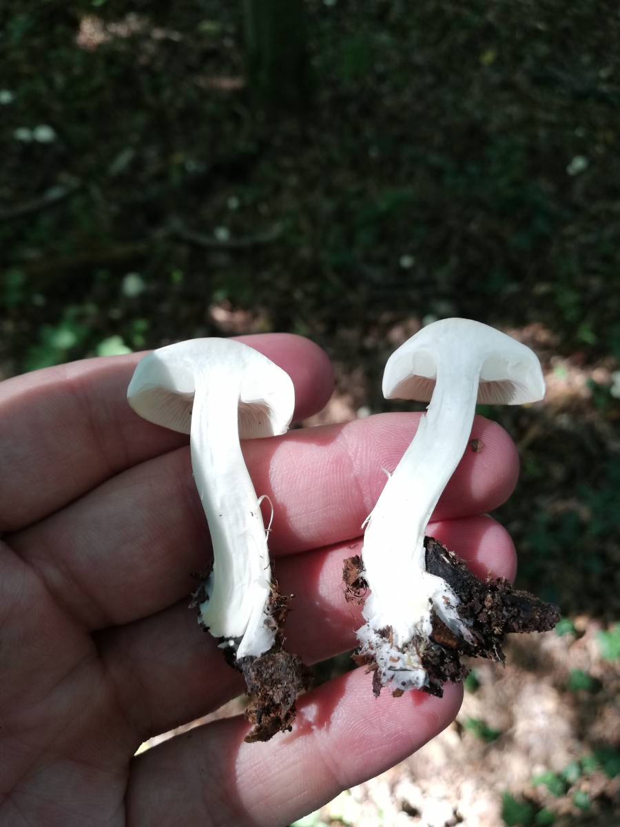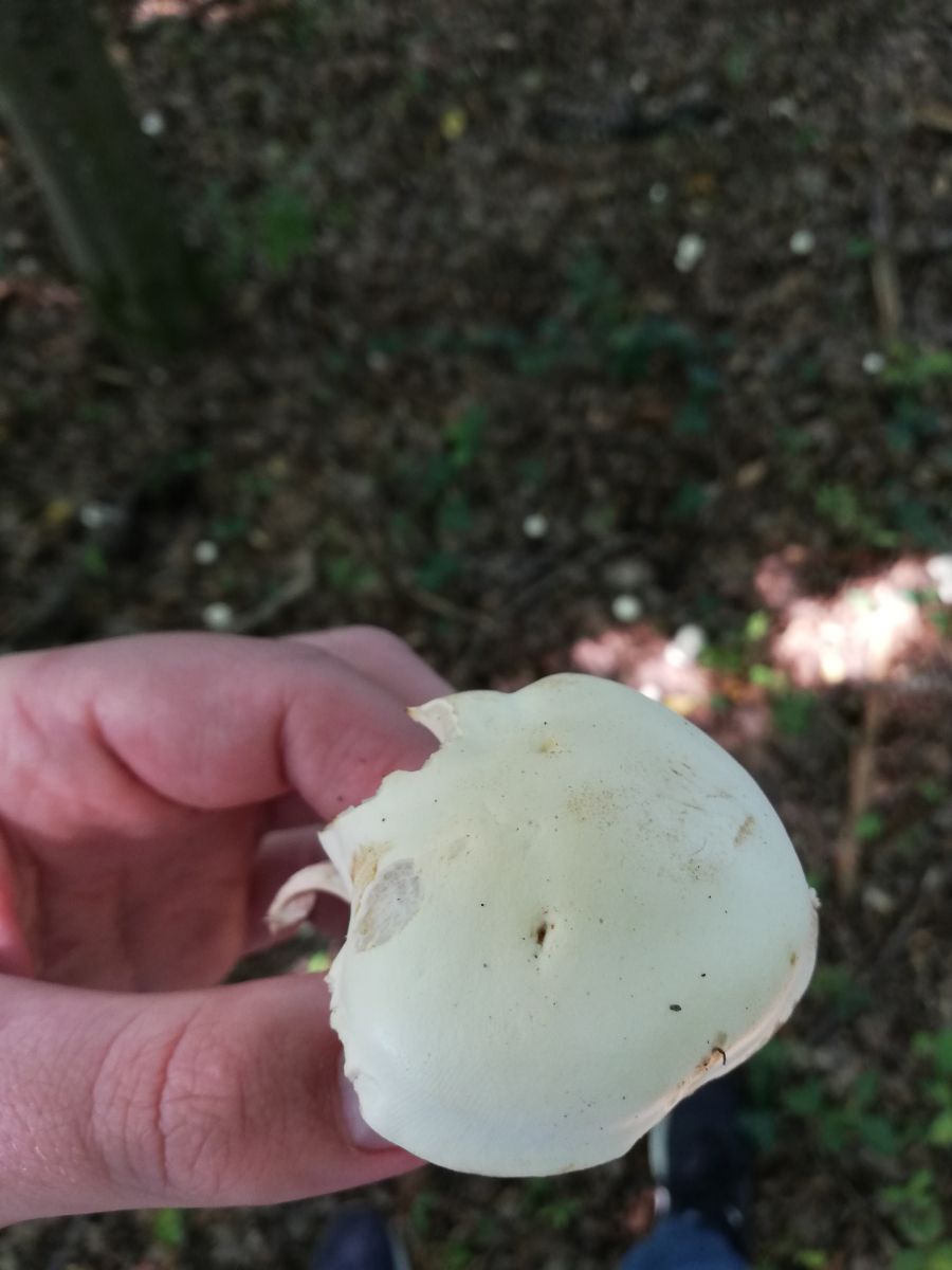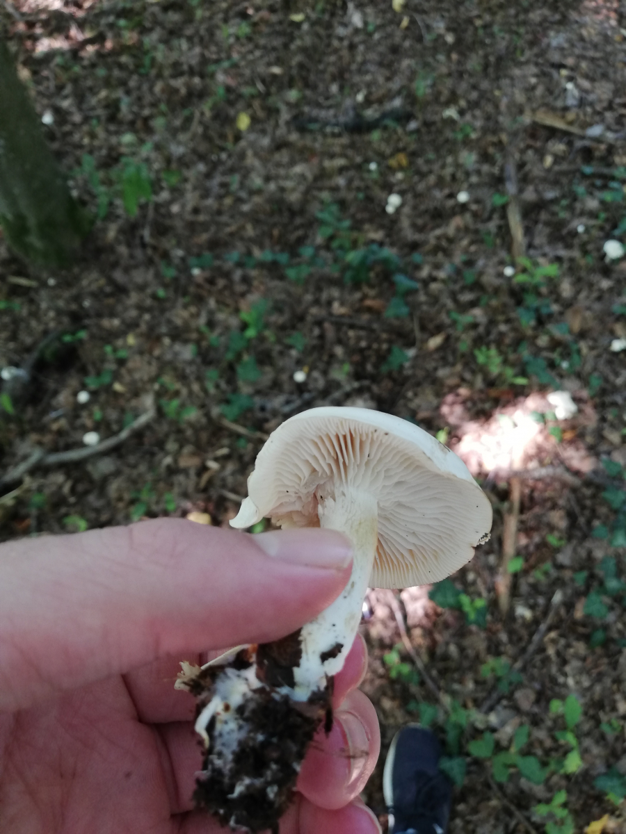 Diesen Pilz fand ich in einem größeren Hexenring um eine Buche herum. Geruch war unangenehm, selbst beim jungen Exemplar ranzig, Oberfläche maximal ganz leicht wachsartig. Ich dachte nicht an Elfenbeinschneckling, obwohl der hier im Wald durchaus schon vorkam, aber meine App die bisher zumindest immer gute Ideen hatte weiß auch nichts außer dem. Könnt ihr mir helfen?