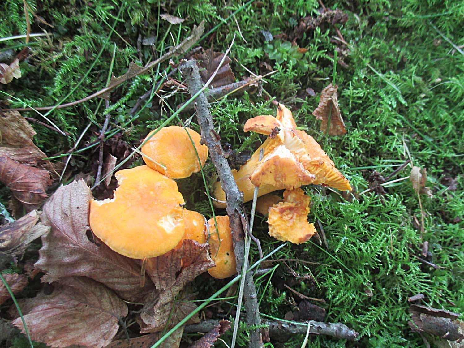 ebenso ein paar Pfifferlingsnester (Cantharellus cibarius).