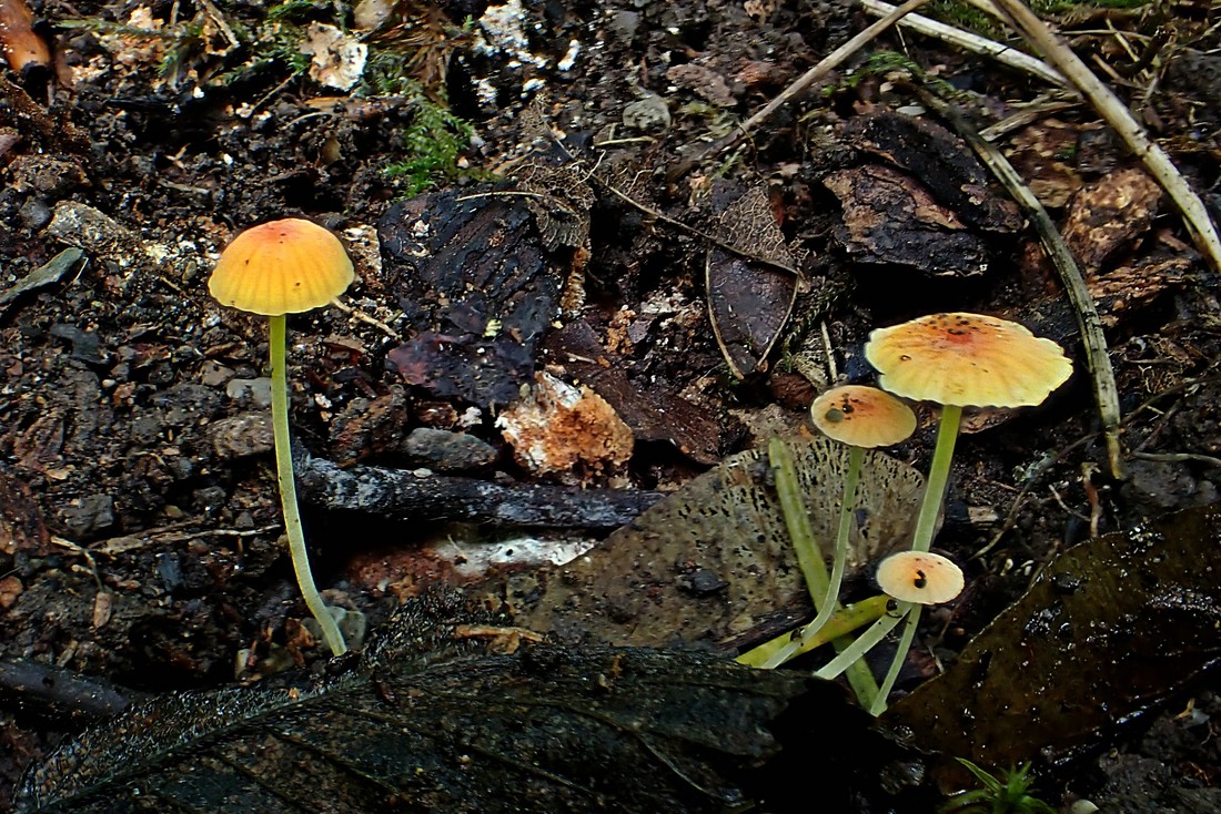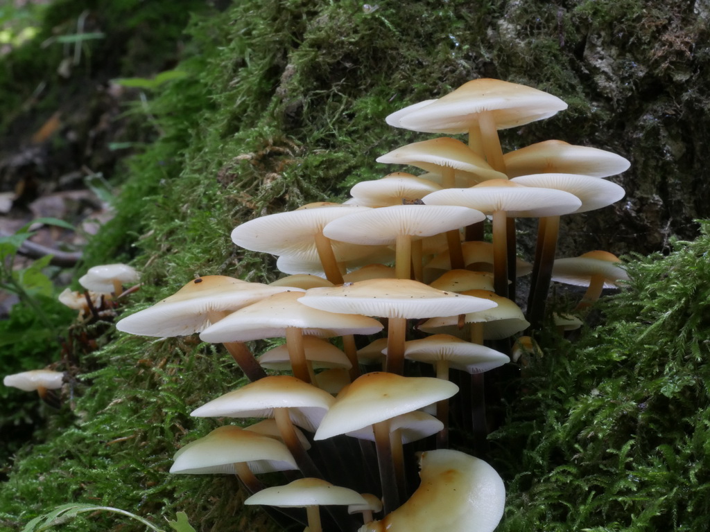 Soviel zum leicht verregneten Freitag. Der Samstag zeigte sich uns sonnig und vor allem anfänglich mit allerlei Kleinkram, wie z.B. dem Orangeroten Helmling (Mycena acicula).