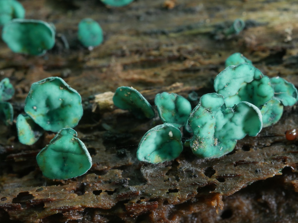 Dann gab es noch diese bizarren Grünspanbecherlinge, vermutlich Chlorociboria aeruginascens, eine Art, die ich nach gut 20 Jahren erstmals wiederfand.