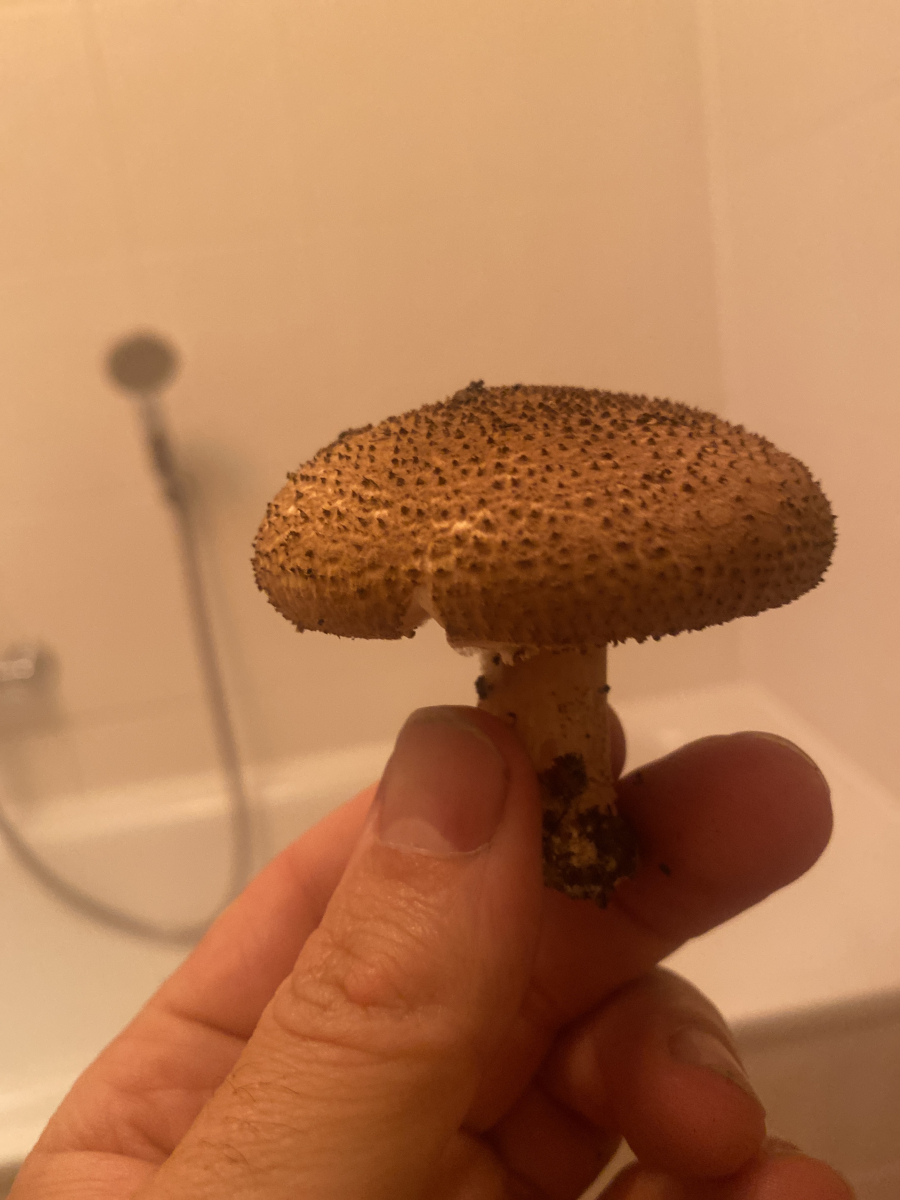 Vergleiche mal mit dem spitzschuppigen Stachelschirmling. Ganz typisch sind die dichtstehenden Lamellen, der dünne häutige Ring und das Vorkommmen entlang von Wegen, sowie ein typischer, nicht sonderlich angenehmer Geruch. Sowie natürlich die Pyramidenstumpf-förmigen "Stacheln" auf dem Hut...