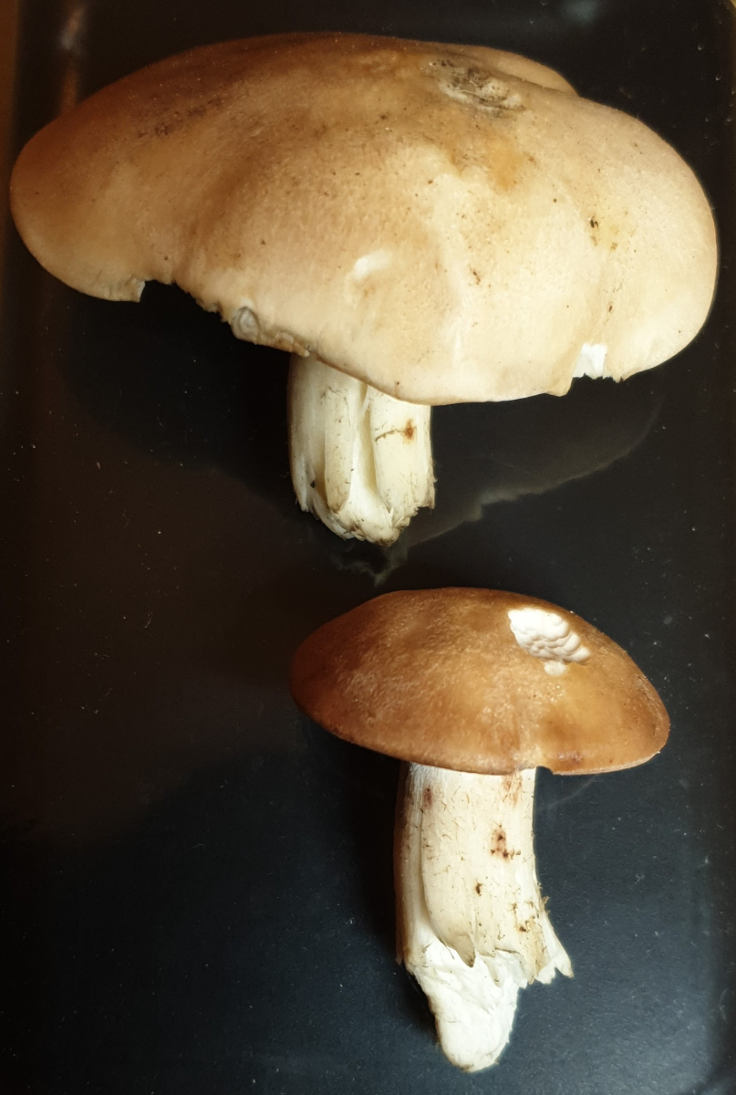 Als Speisepilzsammler habe ich instinktiv alle Erdreste entfernt, sowie Hutoberfläche und Stiel abgewischt. Es ist also möglich, dass die weiße Bereifung am Stiel noch weiter nach unten ging.