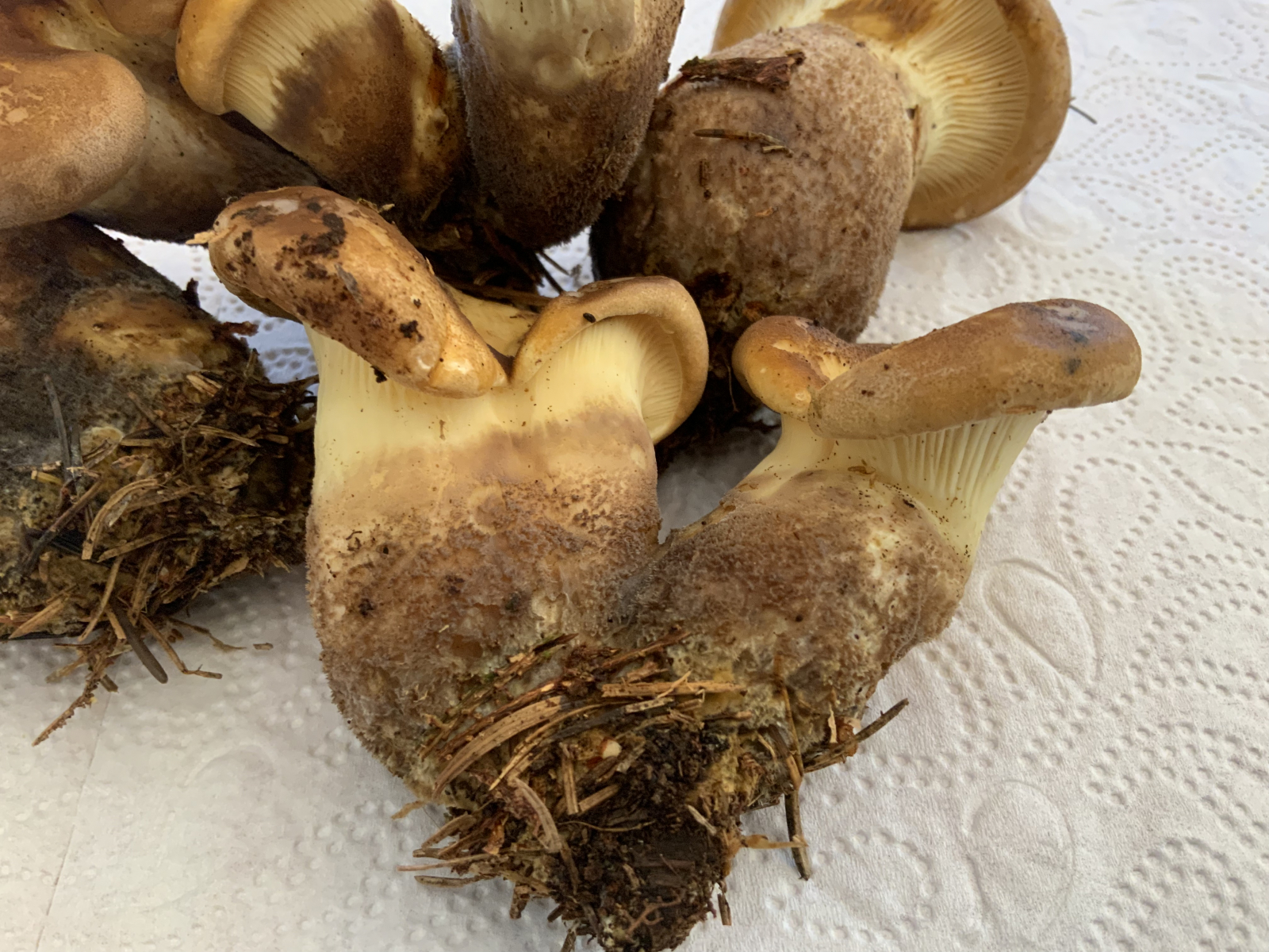 suche einen Ansatzpunkt, ob es sich hier um einen Vertreter der Stoppelpilze handelt.