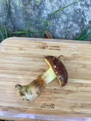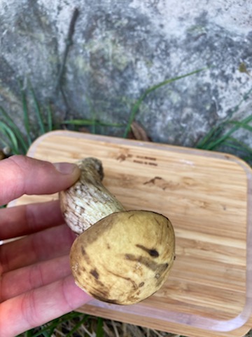 leider sind die Bilder recht klein und nicht besonders scharf, das erste erinnert wegen der blauen Verfärbung im Hut un der rötlichen Verfärbung in der Stielbasis an eine Ziegenlippe,
