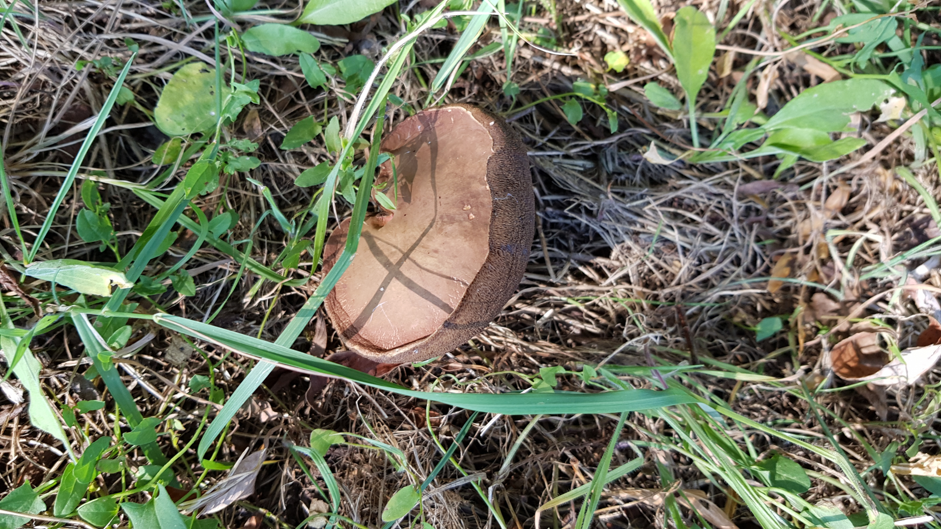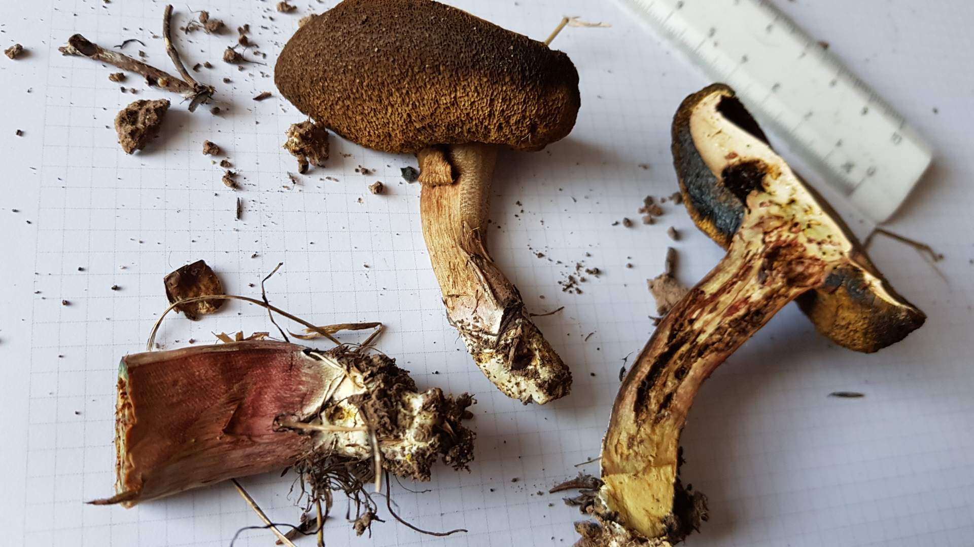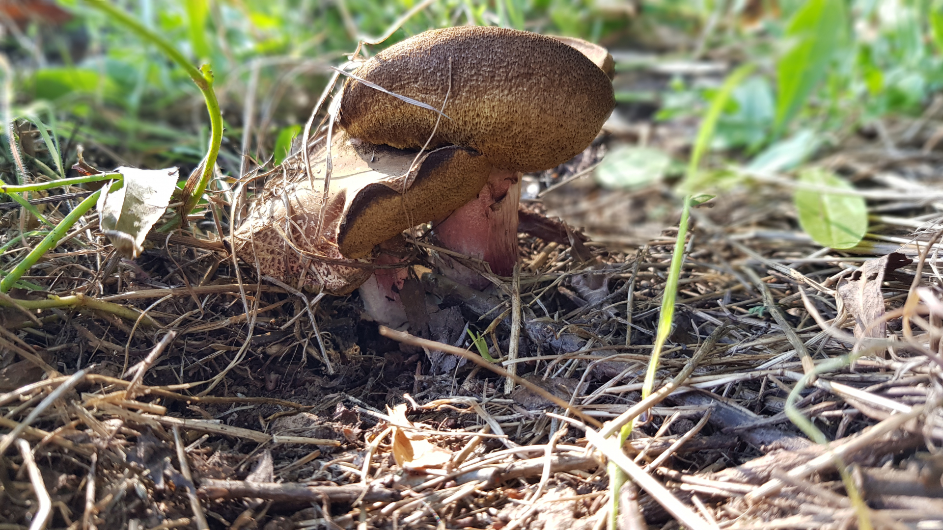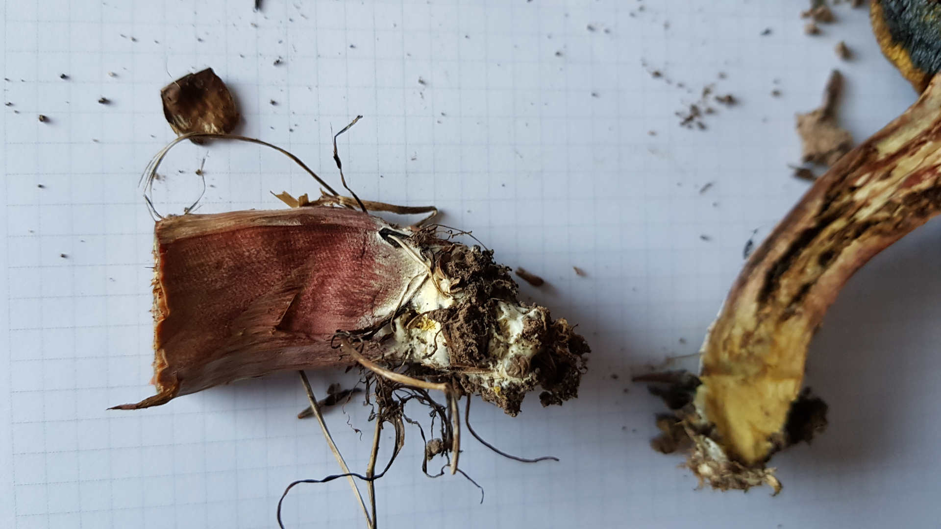 Obwohl ich eigentlich immer falsch mit meinen Bestimmungsversuchen liege, versuche ich es schon wieder. Die ersten Aufnahmen vor Ort brachten mich auf die Idee, dass es eine Ziegenlippe sein könnte. Die Poren sind mir aber zu wenig gelb, obwohl der Pilz wohl schon alt ist.