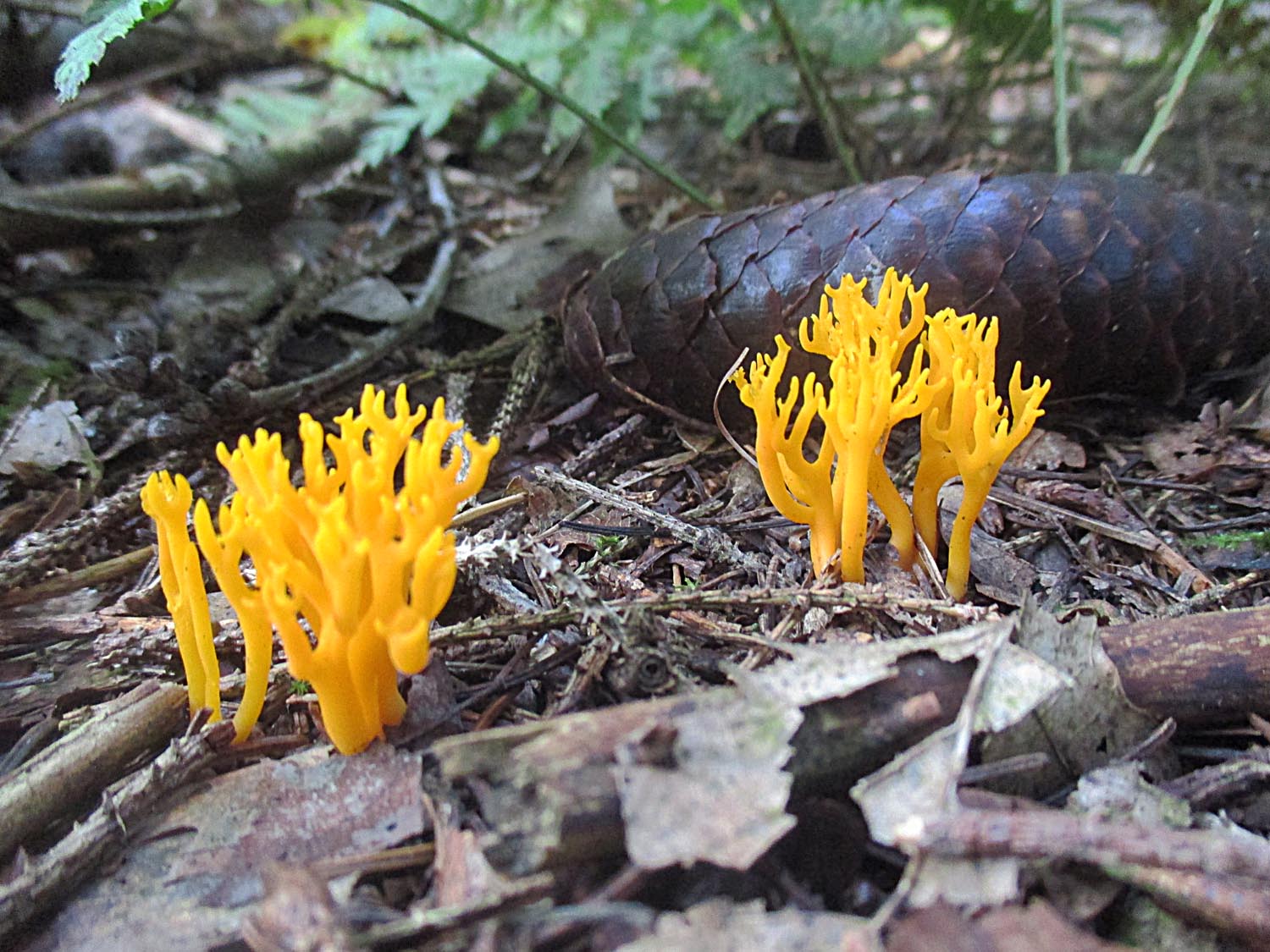 Immer wieder schön anzusehen ist der Klebrige Hörnling (Calocera viscosa).
