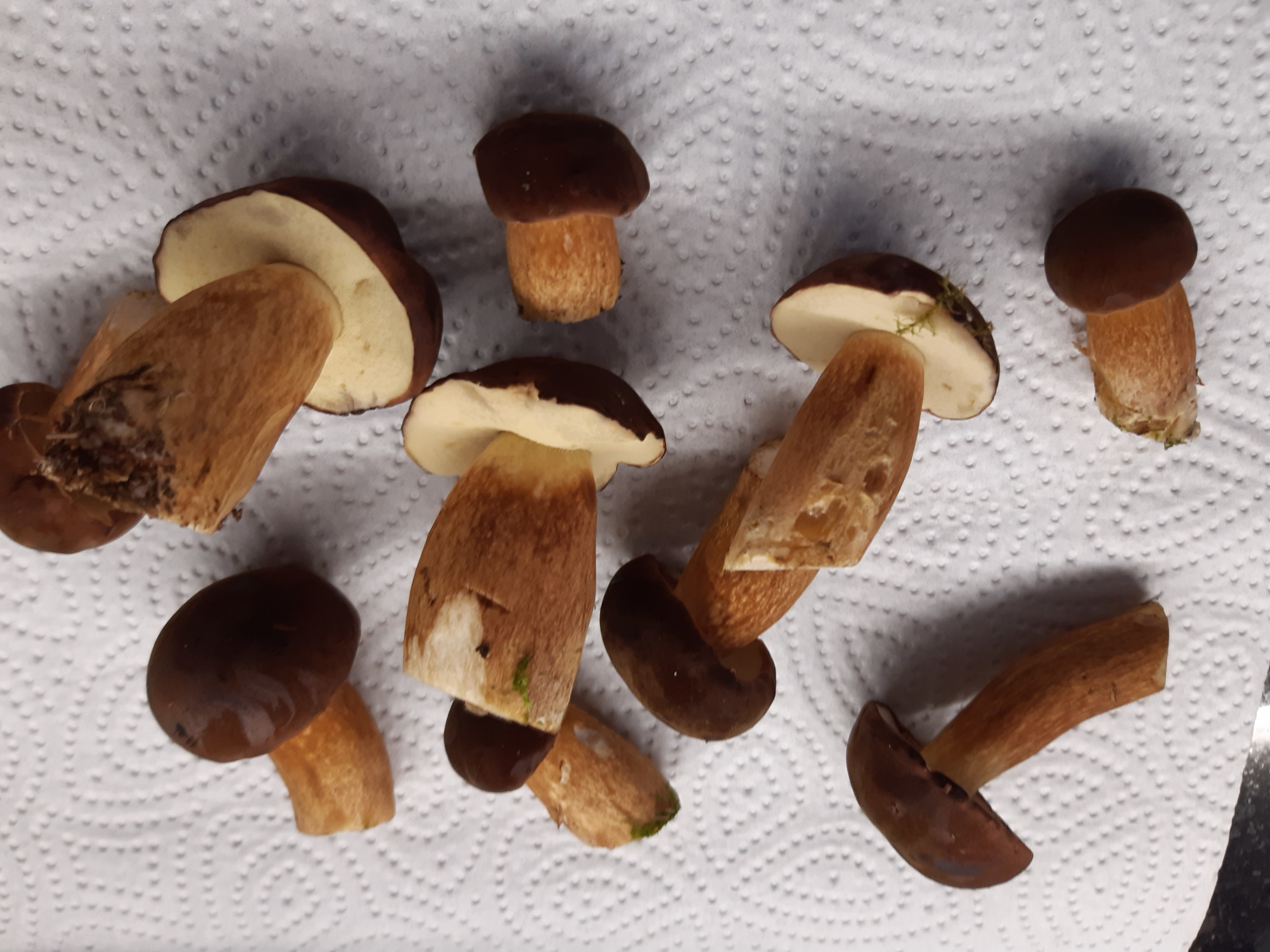 Alle kein Netz... Maronen Schwamm blau färbend. Steinpilze oben fast wie Rauhleder. Kein rot im/am Stiel. Stielfasern nach oben. Kein hohler Stiel...