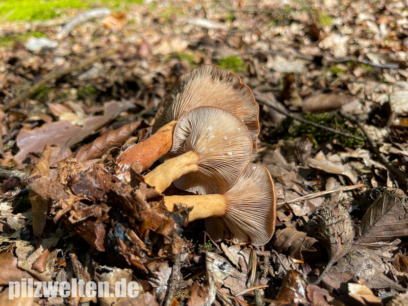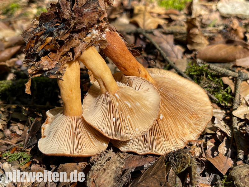 Hat den Titel des Themas von „Gerunzelter Milchling mit auffälligem Lamellenansatz - Lactarius rubrocinctus?“ zu „Gelöst: Süßlicher Milchling, Lactarius subdulcis“ geändert.