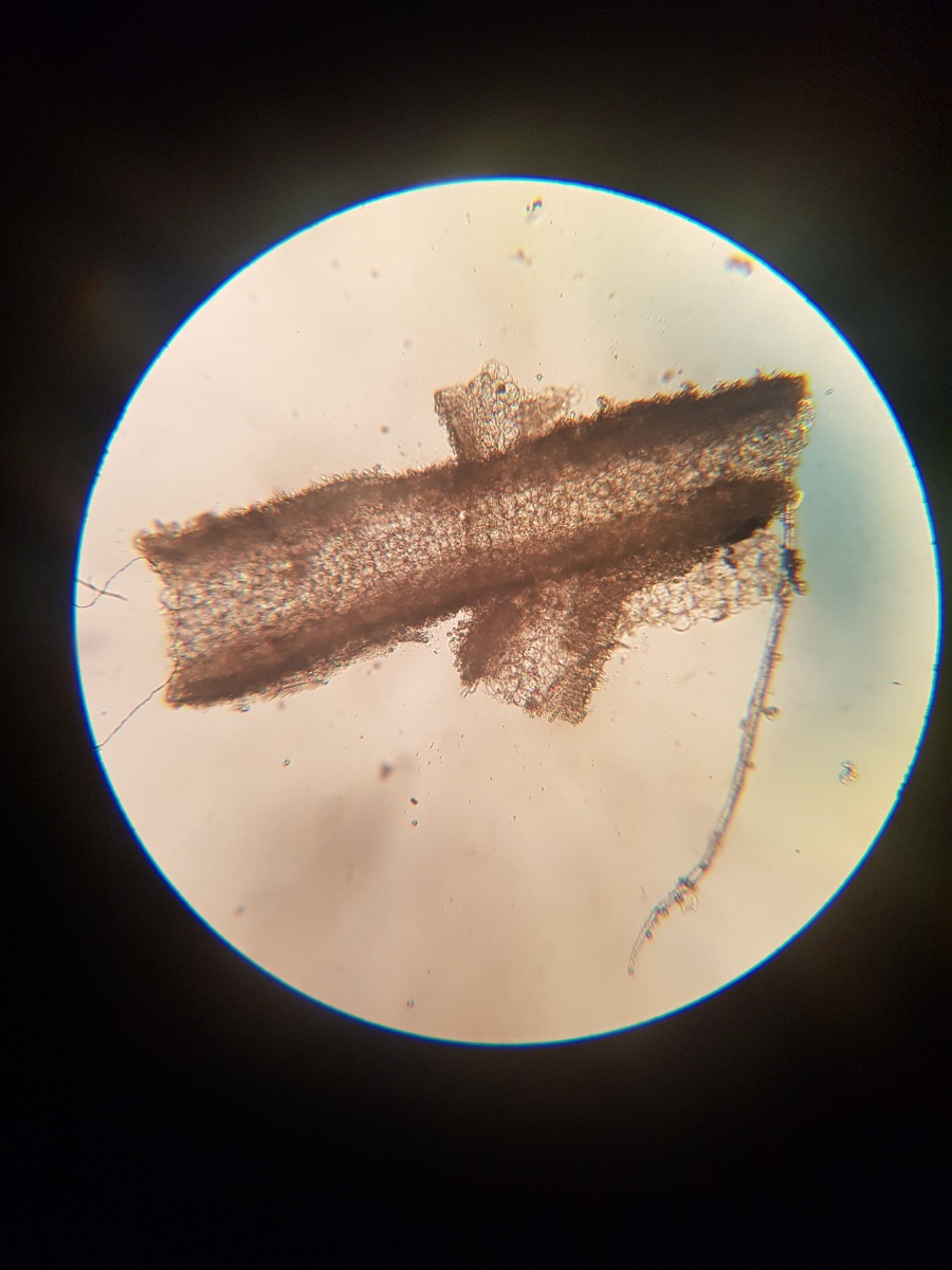 Das Foto hab ich mit meinem Handy bei einer Vergrößerung von 100x gemacht. Das untere Stück scheint sich über den Längsschnitt geschoben zu haben.