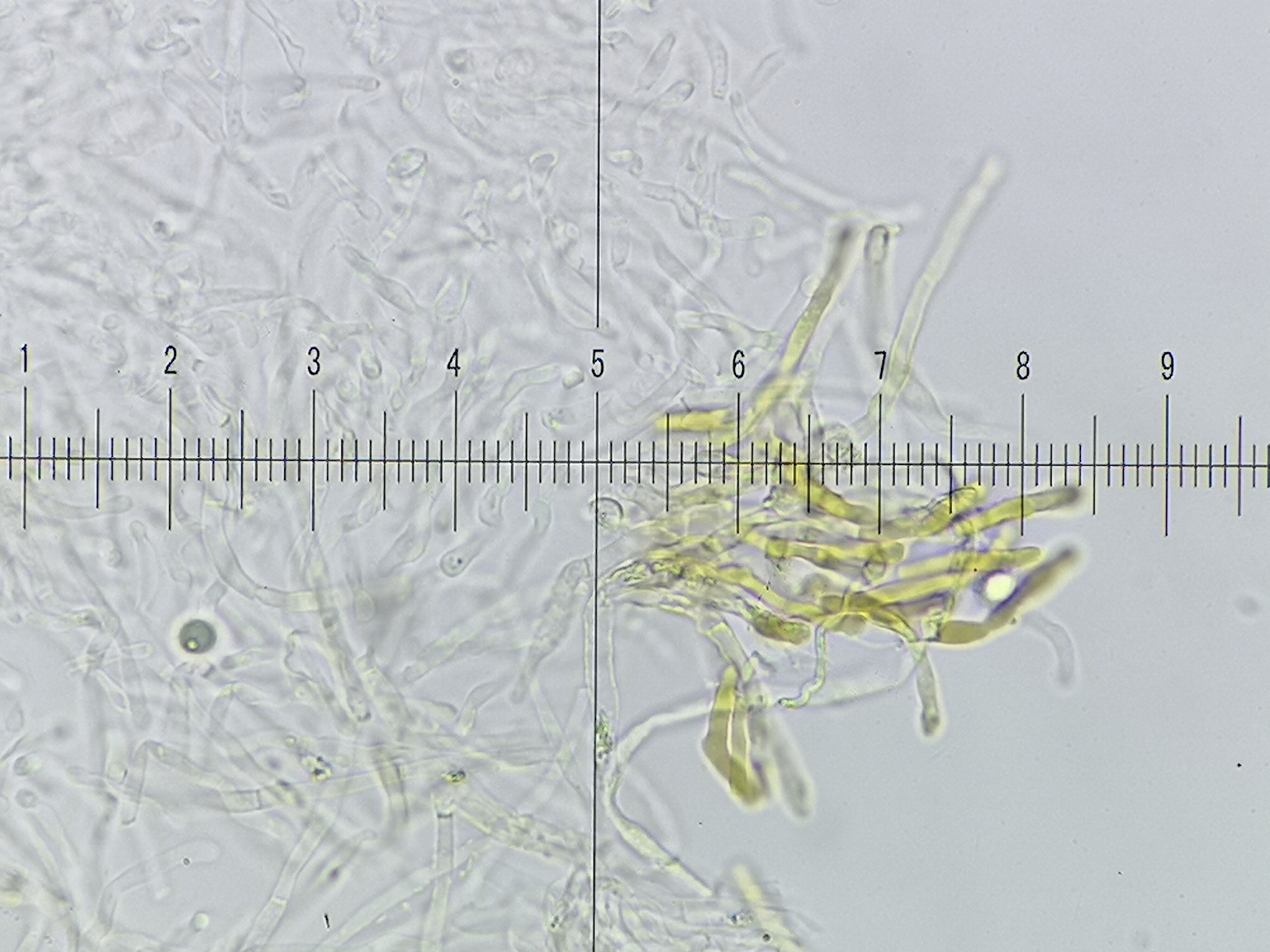 Ich hab mir die Huthaut von R. ochroleuca unter dem Mikroskop angeschaut. Echt spannend!