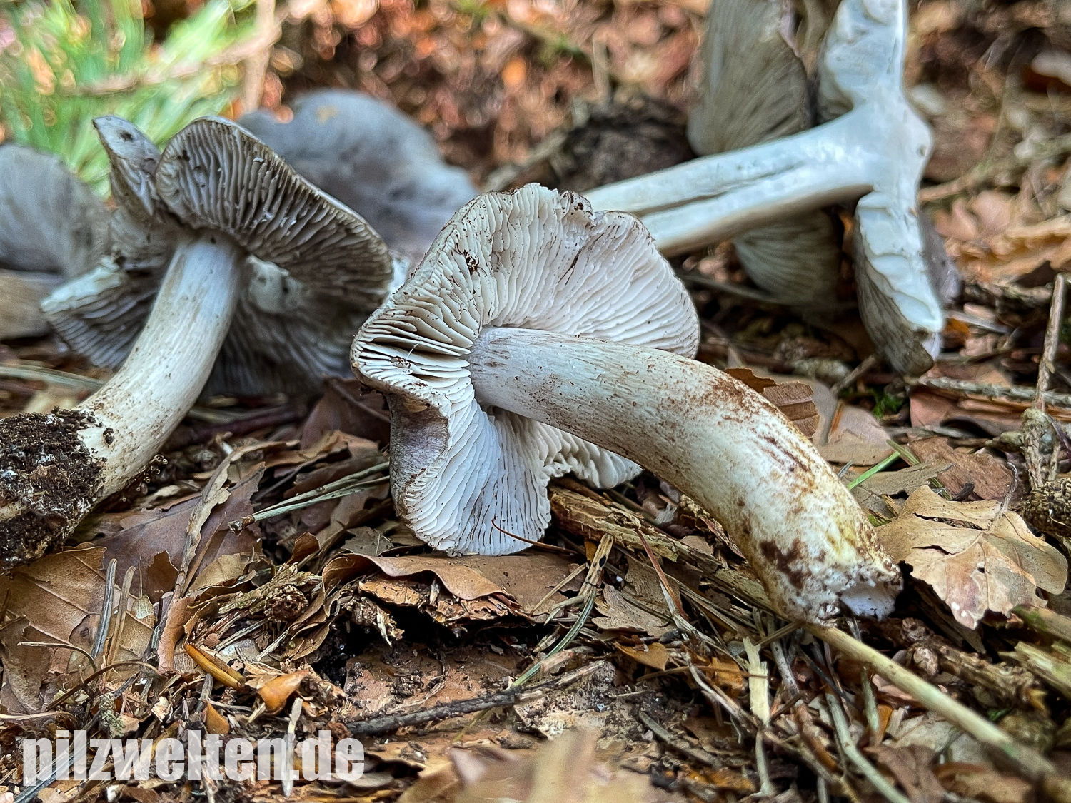 den folgenden Erstfund konnte ich auf einer gestrigen Tour im Kalkbuchenmischwald direkt unter einer alten, dicken Eiche machen. Der erste Eindruck im Wald war sofort Silberritterling (Tricholoma bresadolanum), aber irgendwie bin ich mir bei der Nachlese im Moment gar nicht mehr so sicher.