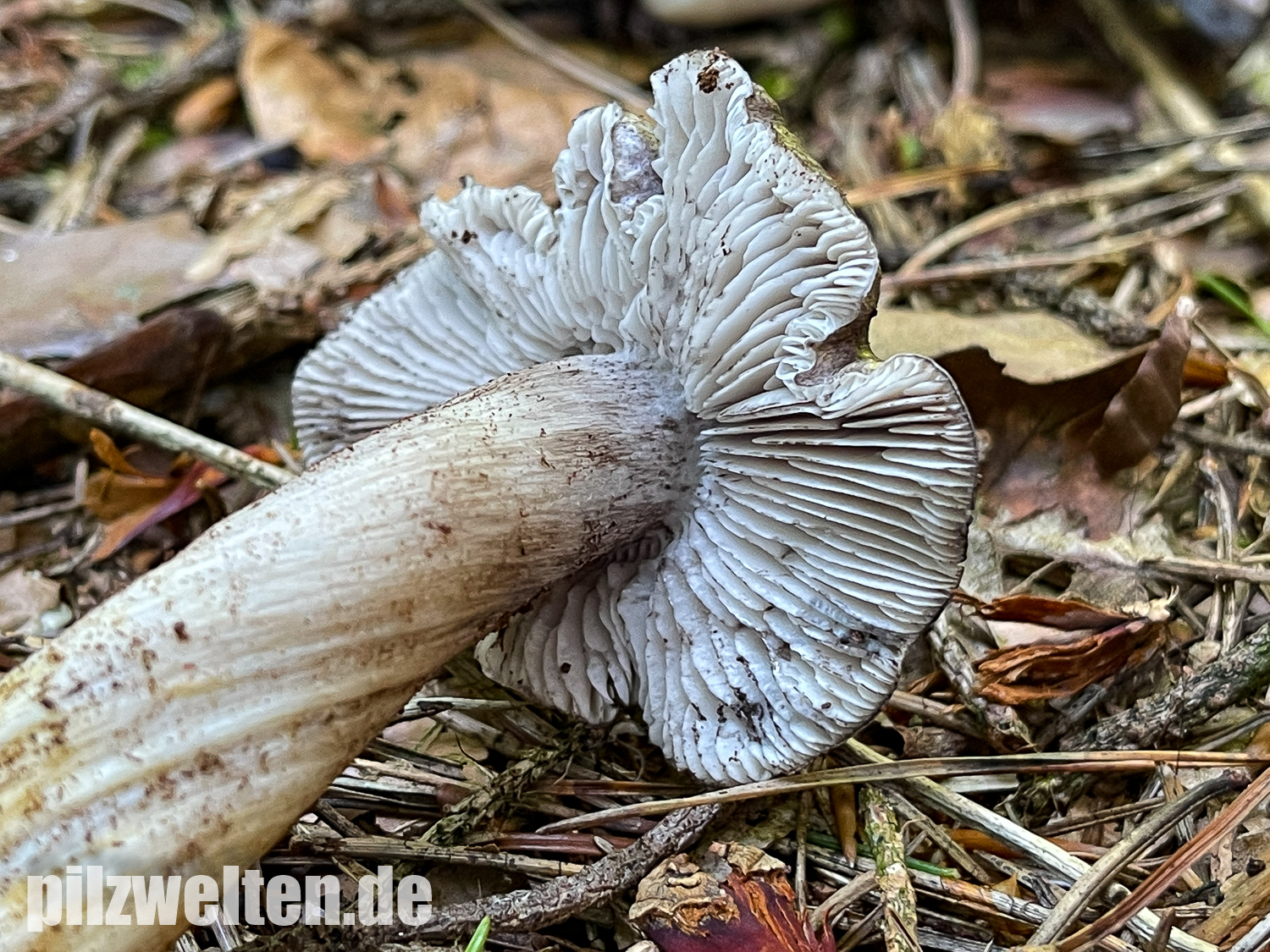 den folgenden Erstfund konnte ich auf einer gestrigen Tour im Kalkbuchenmischwald direkt unter einer alten, dicken Eiche machen. Der erste Eindruck im Wald war sofort Silberritterling (Tricholoma bresadolanum), aber irgendwie bin ich mir bei der Nachlese im Moment gar nicht mehr so sicher.
