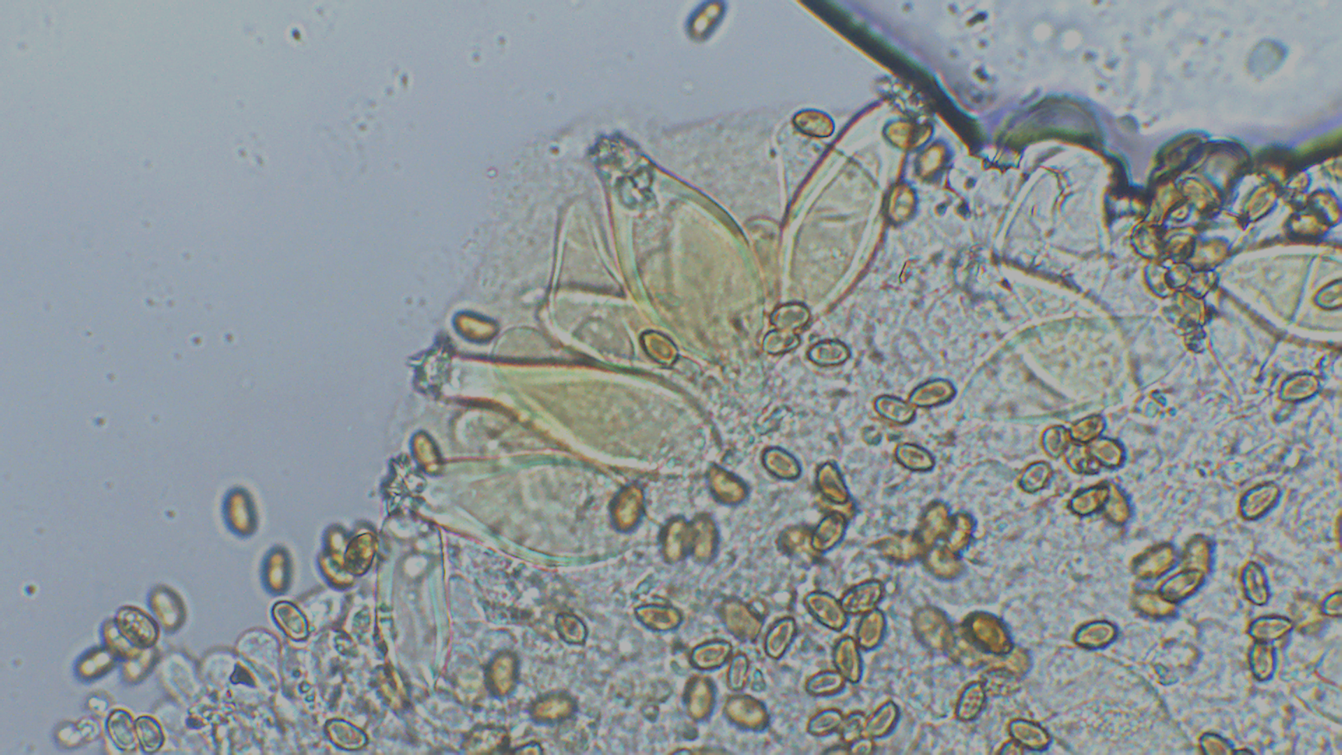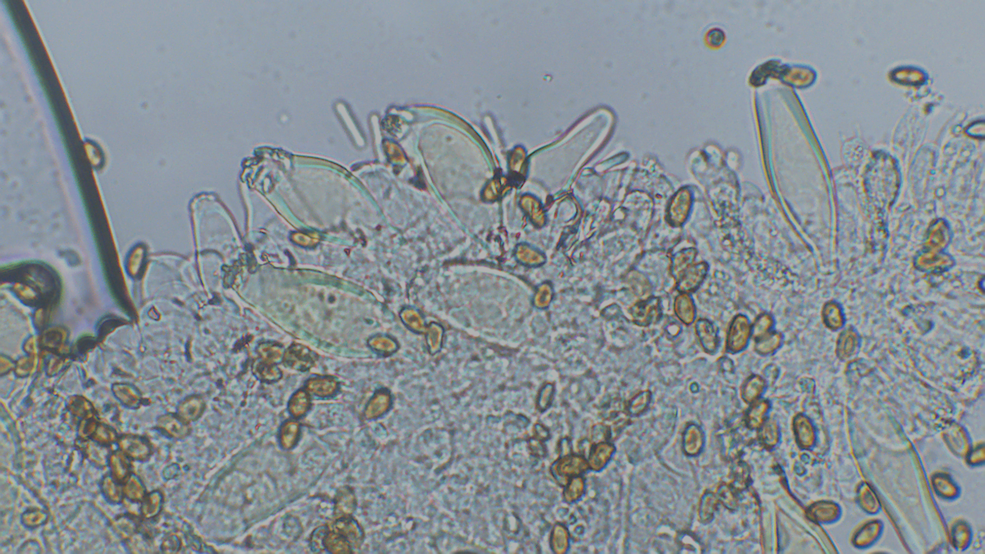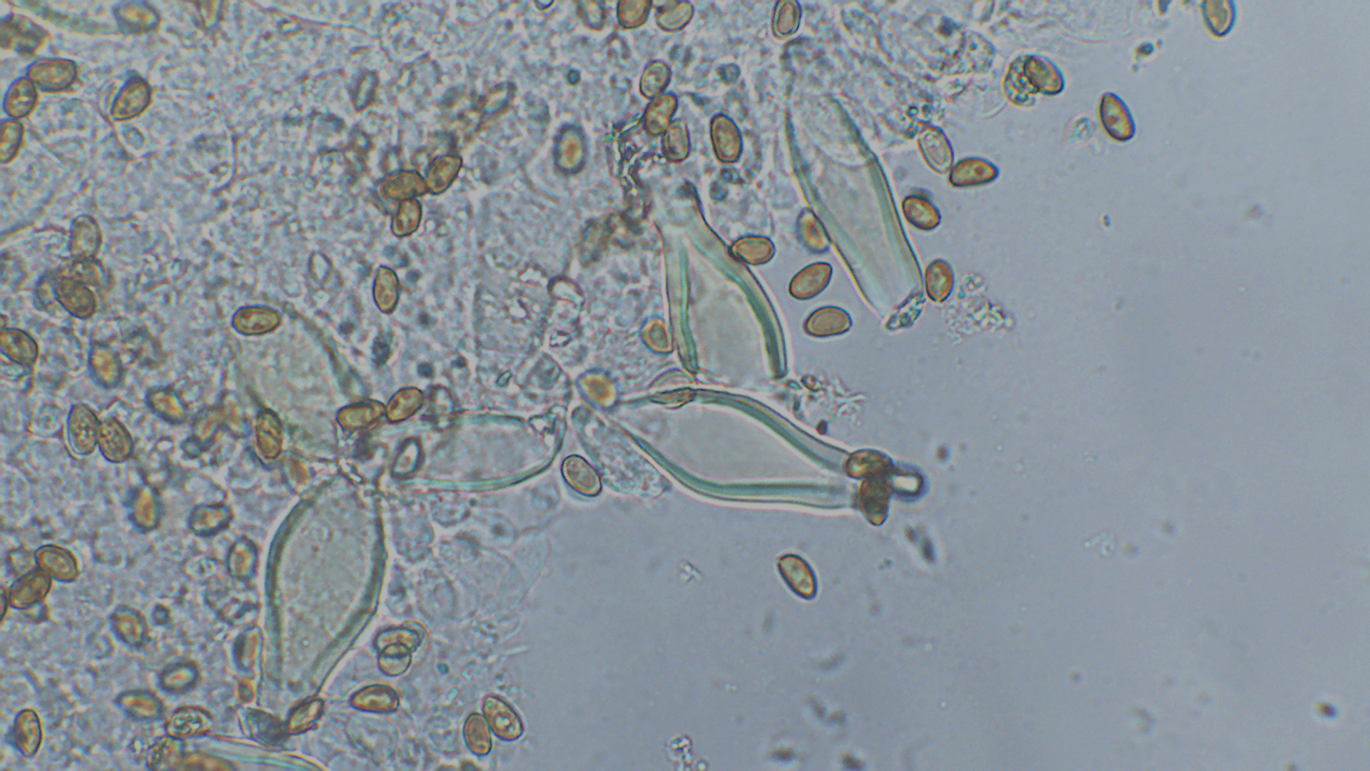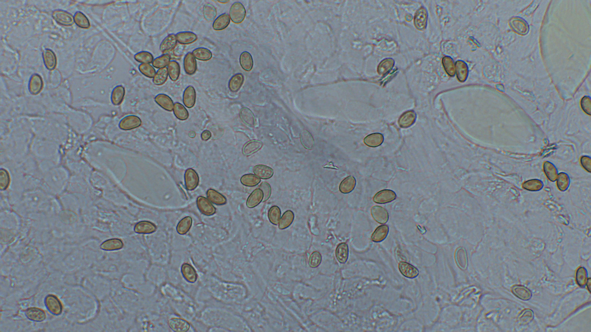 Die Sporen gingen von 7,3-9,6X 4,4-5,9; im Durchschnitt 8,6-4,9.