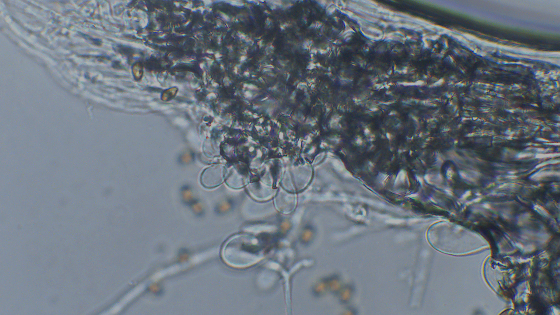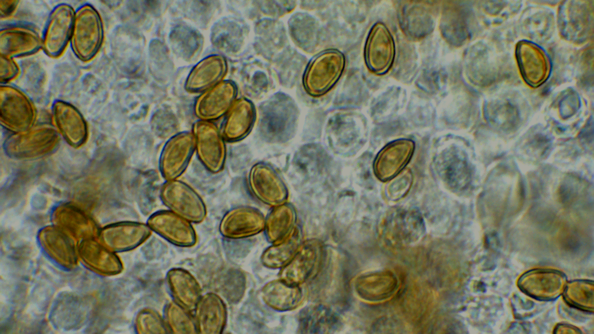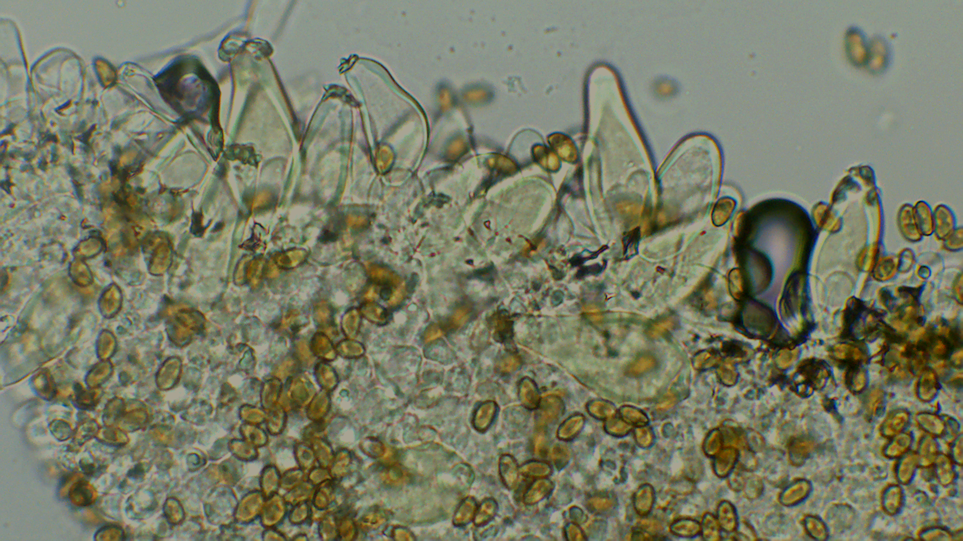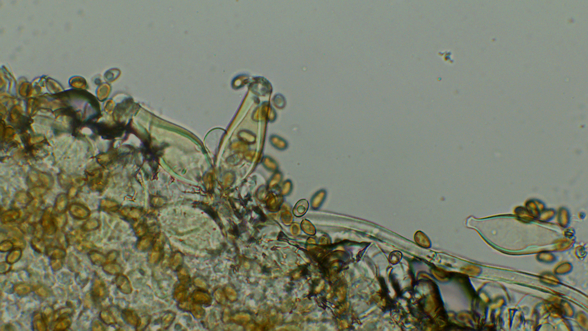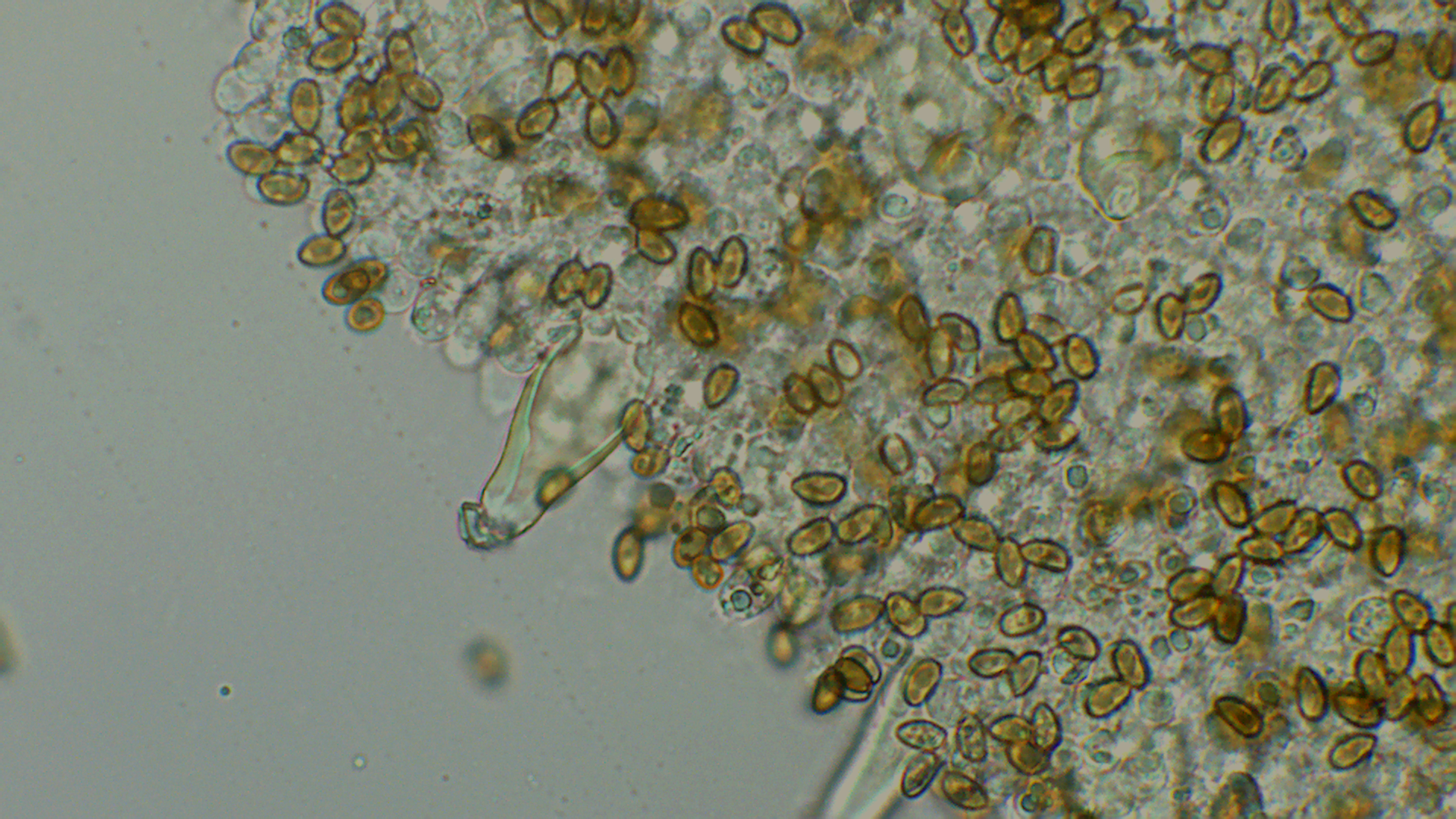 Die Sporen gingen von 7,3-9,6X 4,4-5,9; im Durchschnitt 8,6-4,9.