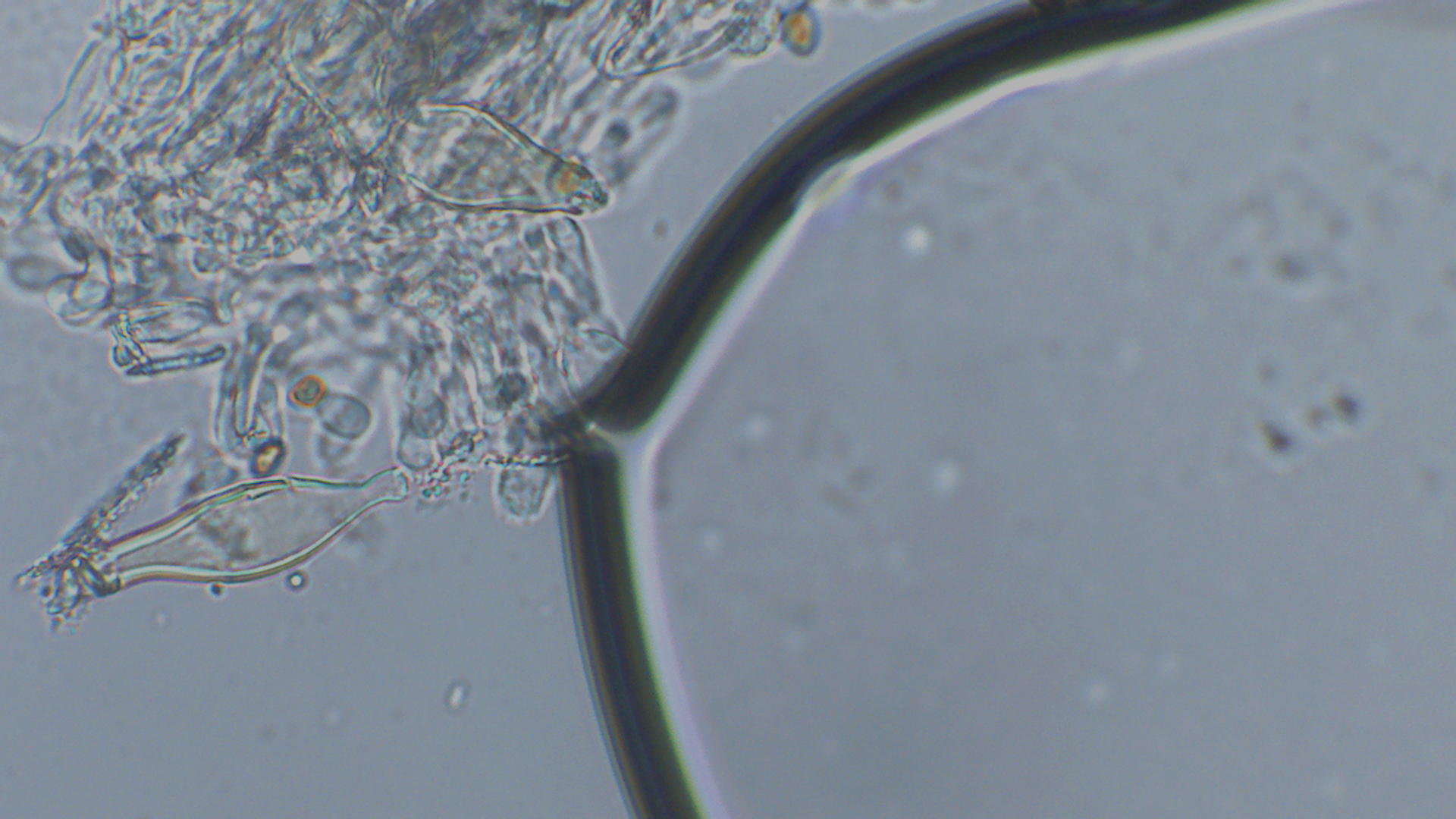 Der Stiel war nur oben bereift und auch dort war es nicht so einfach metuloide Zystiden zu finden. Geruchlich würde ich ihn als schwach spermatisch bezeichnen.