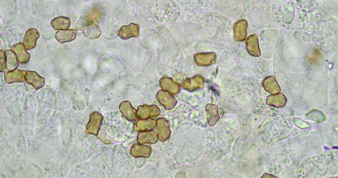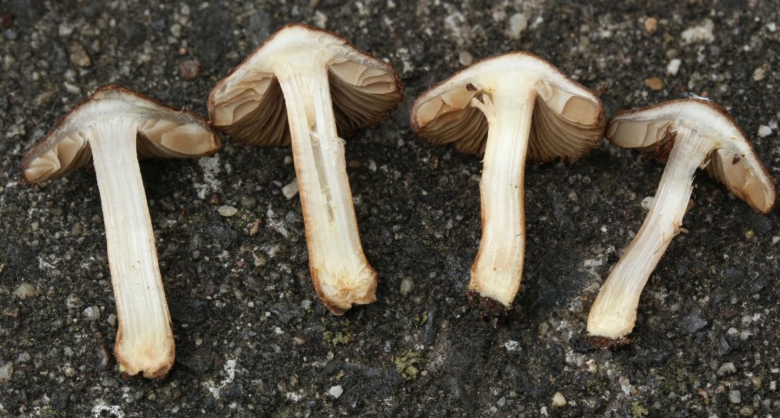 Nr. 1. Diese sehr kleine, bis 2 cm Durchmesser und 2,5 cm Länge erreichende Inocybe fand ich auf einem Friedhof unter Linden zwischen Schotter. So rein makroskopisch und auch wegen der Sporen dachte ich erst an javorkae. Jedenfalls bis ich die Sporen gemessen habe, weil mit einer Durchschnittslänge von gerade mal 9,6 µm (8,5-10,5(11) x 5,5-6(6,5) µm) ist das schon arg klein für javorkae und dann fehlt auch noch der schwarze Rand an der Stielknolle im Schnitt, bisschen viel auf einmal. Ansonsten würde die ja ganz gut passen, schuppiger Hut, sehr klein, mind. bis zur Mitte bereifter Stiel (wobei teils schwer erkannbar, nach unten fand ich meist nur noch haarartige Elemente), Geruch spermatisch, sonst keine Auffälligkeiten bei Farbe oder Verfärbungen.