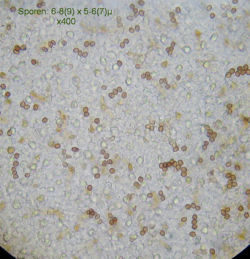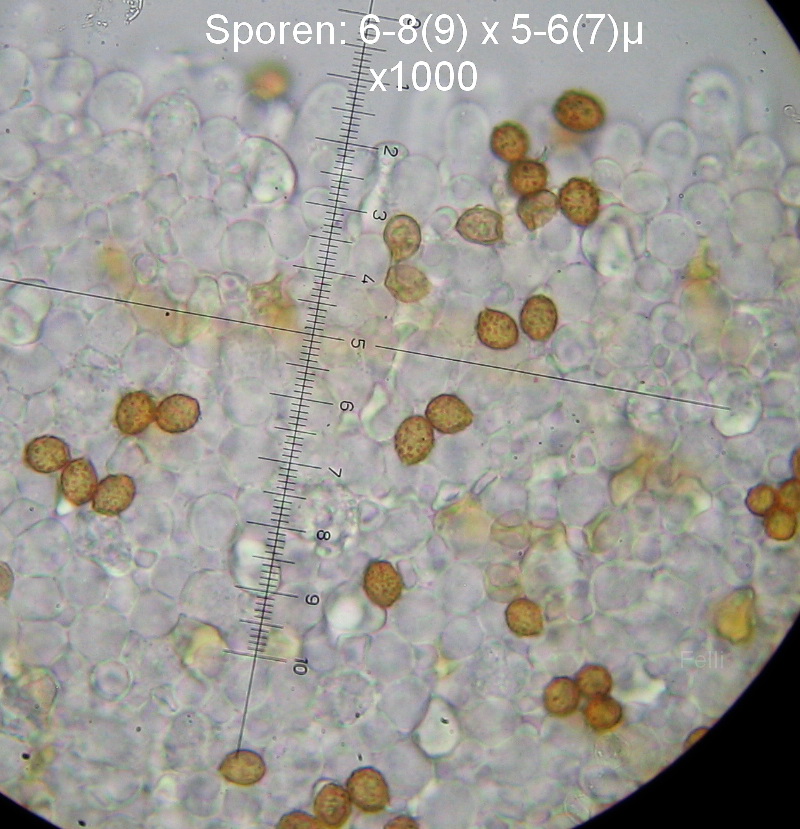 Die Sporen sind stark warzig ornamentiert, breitellipsoid-rundlich und 6-8(9) x 5-6(7)µ groß.