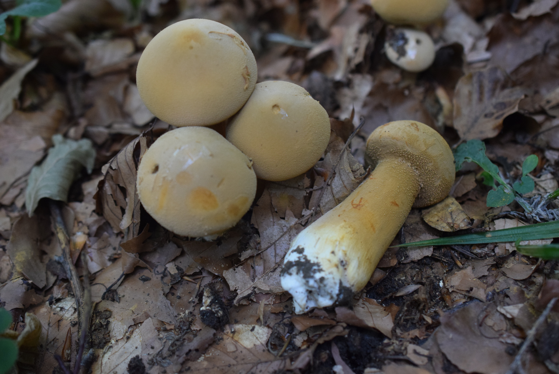 bei Bild 2 vielleicht Phaeolepiota aurea - Goldfarbener Glimmerschüppling?